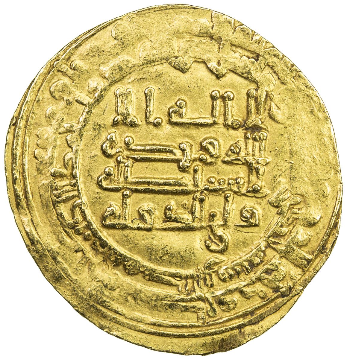 ABBASID: al-Muktafi, 902-908, AV dinar (4.04g), Hamadan, AH291, A-243.2, Bernardi-228Mu, citing the vizier Wali al-Dawla, minor weakness, typical of dinars from Hamadan during this period, VF to EF, RRR, ex Stephen Album Auction 15, Lot 197. Bernardi reported only two specimens of this mint/date combination.