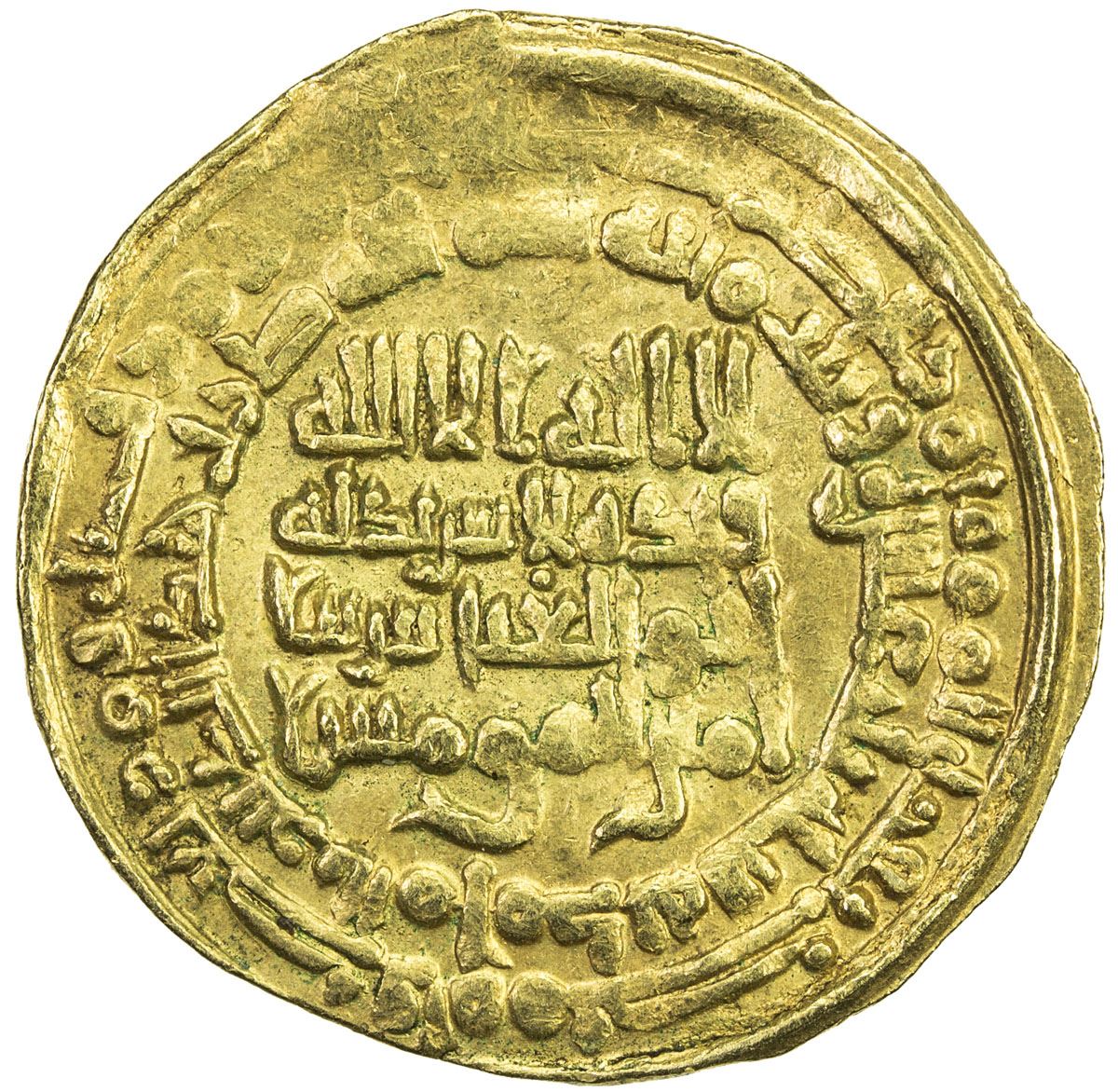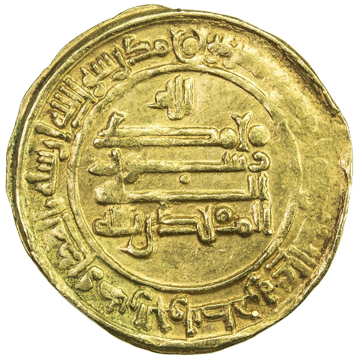 ABBASID: al-Muqtadir, 908-932, AV dinar (3.41g), al-Muhammadiya, AH313, A-245.2, rare date for this mint, minor weakness in the outer marginal area, VF to EF, R