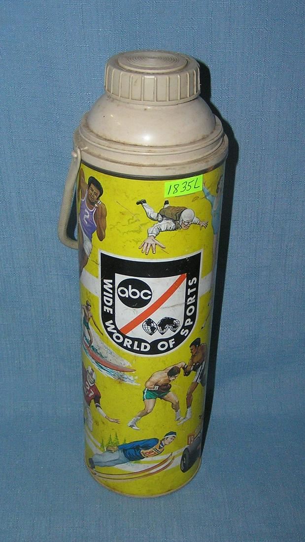 Vintage ABC Wide World of Sports thermos container featuring Muhammad Ali and other great sports stars of the day dated 1976, very good condition est. value $125.00-$150.00