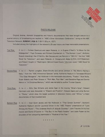 ABC's Silver Anniversary Celebration (ABC, 1978) Photo Release. Very light edge wear, some creases, tape. Very Fine. (11"x14").