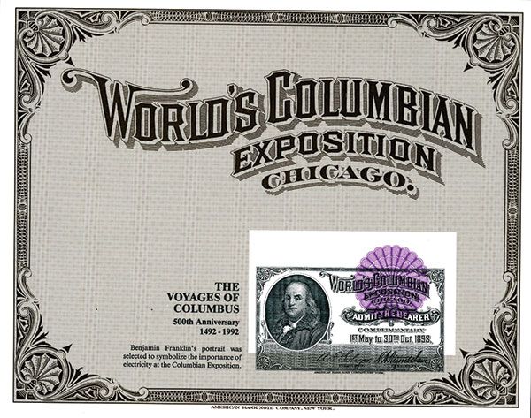 Chicago, IL, 1993, World's Columbian Exposition, 1893 Voyages of Columbus, 500th Anniversary, error with intaglio printing of Franklin Expo Ticket out of registration by 3/4 inch, Dramatic shift and rare. Mint, ABNC.