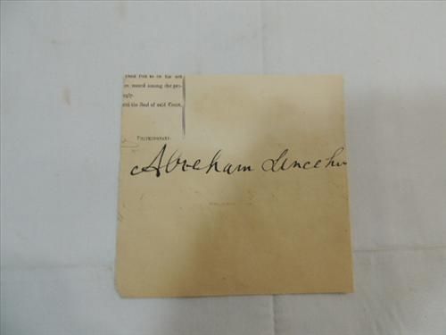 ABRAHAM LINCOLN CUT SIGNATURE AUTOGRAPH NO COA. AS SHOWN. VIEW PICTURE FOR DETAIL. PLEASE BE ADVISED, AND INFORMED REGARDING SIGNATURES OR AUTOGRAPHS THAT WE SELL AT AUCTION: WE ARE NOT AUTHENTICATORS, AND WE DO NOT AUTHENTICATE, OR VALIDATE ANY AUTOGRAPHS OR SIGNATURES THAT WE OFFER AT AUCTION. SOME AUTOGRAPHS OR SIGNATURES MAY COME WITH AN AUTHENTICATION FROM ANY ONE OF LITERALLY HUNDREDS OF AUTHENTICATORS ACROSS THE COUNTRY, AND AROUND THE WORLD. WE DO NOT ENDORSE ANY AUTHENTICATOR, NOR DO WE GUARANTEE THAT ANY AUTOGRAPH OR SIGNATURE IS AUTHENTIC, OR THAT IT WILL PASS AUTHENTICATION BY ANY AUTHENTICATOR. ALL AUTOGRAPHS OR SIGNATURES ARE SOLD