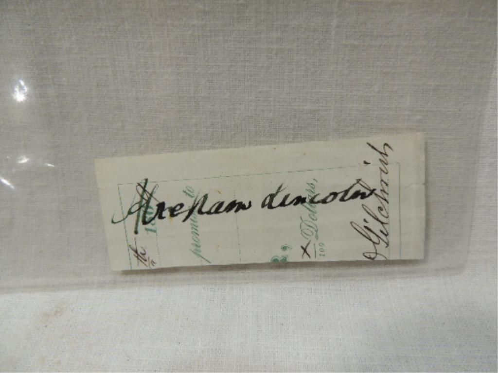 ABRAHAM LINCOLN CUT SIGNATURE AUTOGRAPH NO COA. AS SHOWN. VIEW PICTURE FOR DETAIL. PLEASE BE ADVISED, AND INFORMED REGARDING SIGNATURES OR AUTOGRAPHS THAT WE SELL AT AUCTION: WE ARE NOT AUTHENTICATORS, AND WE DO NOT AUTHENTICATE, OR VALIDATE ANY AUTOGRAPHS OR SIGNATURES THAT WE OFFER AT AUCTION. SOME AUTOGRAPHS OR SIGNATURES MAY COME WITH AN AUTHENTICATION FROM ANY ONE OF LITERALLY HUNDREDS OF AUTHENTICATORS ACROSS THE COUNTRY, AND AROUND THE WORLD. WE DO NOT ENDORSE ANY AUTHENTICATOR, NOR DO WE GUARANTEE THAT ANY AUTOGRAPH OR SIGNATURE IS AUTHENTIC, OR THAT IT WILL PASS AUTHENTICATION BY ANY AUTHENTICATOR. ALL AUTOGRAPHS OR SIGNATURES ARE SOLD