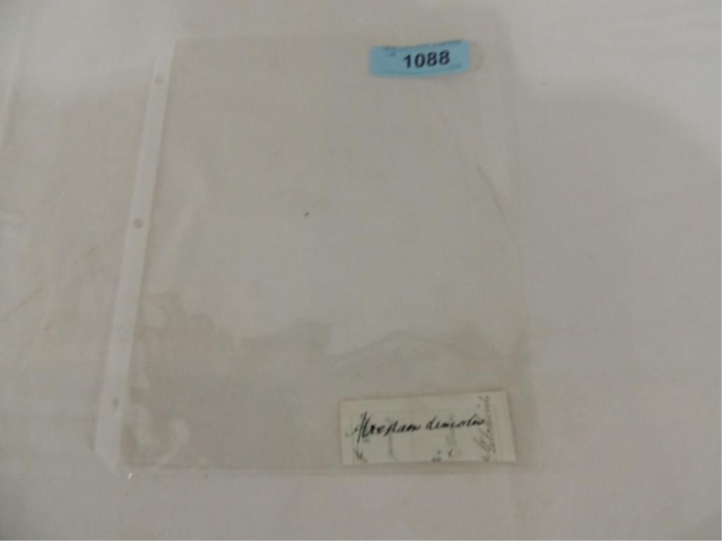 ABRAHAM LINCOLN CUT SIGNATURE AUTOGRAPH NO COA. AS SHOWN. VIEW PICTURE FOR DETAIL. PLEASE BE ADVISED, AND INFORMED REGARDING SIGNATURES OR AUTOGRAPHS THAT WE SELL AT AUCTION: WE ARE NOT AUTHENTICATORS, AND WE DO NOT AUTHENTICATE, OR VALIDATE ANY AUTOGRAPHS OR SIGNATURES THAT WE OFFER AT AUCTION. SOME AUTOGRAPHS OR SIGNATURES MAY COME WITH AN AUTHENTICATION FROM ANY ONE OF LITERALLY HUNDREDS OF AUTHENTICATORS ACROSS THE COUNTRY, AND AROUND THE WORLD. WE DO NOT ENDORSE ANY AUTHENTICATOR, NOR DO WE GUARANTEE THAT ANY AUTOGRAPH OR SIGNATURE IS AUTHENTIC, OR THAT IT WILL PASS AUTHENTICATION BY ANY AUTHENTICATOR. ALL AUTOGRAPHS OR SIGNATURES ARE SOLD