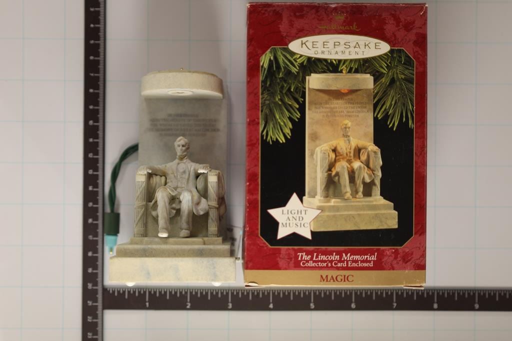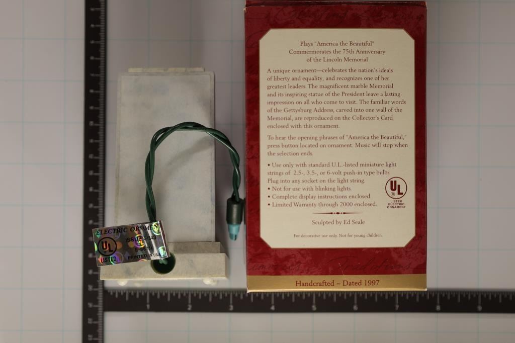 WITH LIGHT AND MUSIC 2 1/2" X 2 1/2" X 4 1/2", PLUGS INTO CHRISTMAS LIGHT STRING IN BOX WITH INSTRUCTIONAL PAPERWORK