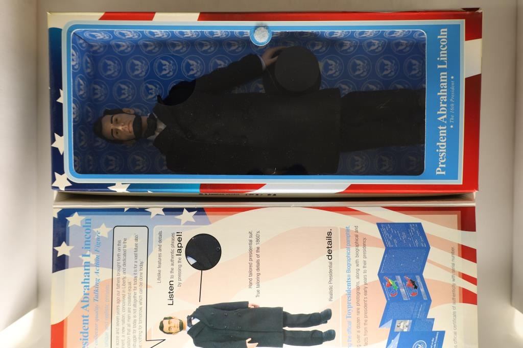 EDITION, NEW IN BOX. PART OF THE TOY PRESIDENTS SERIES. 25 PHRASES, ACCESSORIES AND BIOGRAPHICAL PAMPHLET, APPROX. 12'' IN HEIGHT