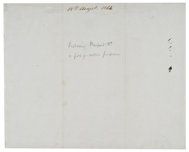 August 18, 1864-Dated Civil War Period, Partially-Printed Document Signed, “Abraham Lincoln” as President, 1 page (upon a folded 4 page sheet), measuring about 10” x 8” (Quarto), Washington (DC), Very Fine. Signed during the Civil War, Lincoln recognizes the Port of Newport, Vermont as a key point of commerce for trade between the United States and Canada. Minor outer edge tone from a prior display, somewhat light manuscript portions, nicely printed in black upon fine period wove light blue paper, overall in nice condition. The primary word “Proclamation,” measuring a huge 4.5” long. Lincoln writes his full name for the signature, “Abraham Lincoln” which is well written in deeper brown ink and appears as the most prominent item upon the page, drawing one’s eye immediately to it, measuring over 2.5” long. Docket on the blank reverse reads: “18th August, 1864.” This Document reads, in full: