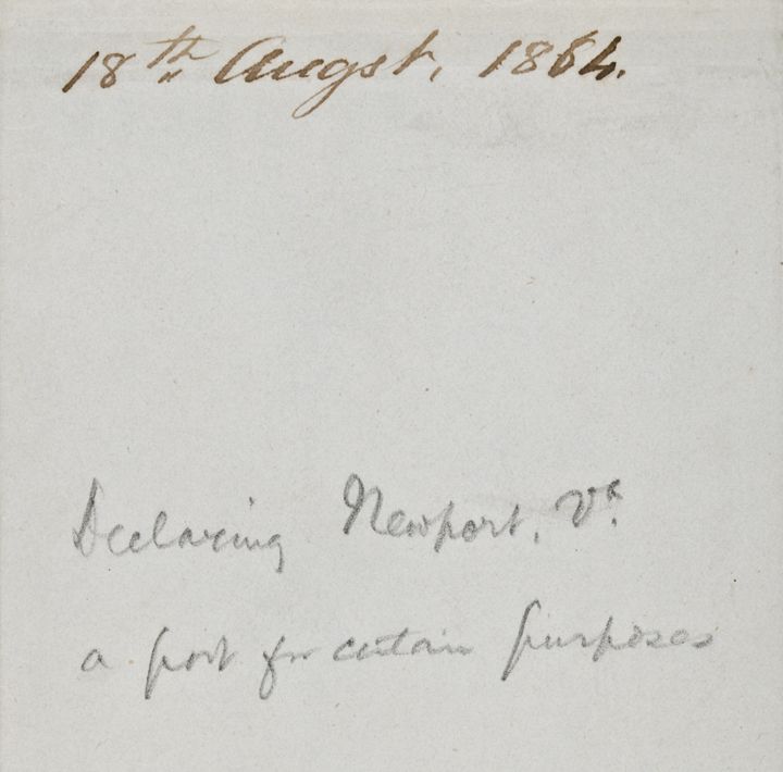 The “Proclamation” specifically referred to in this Authorization Document was also issued on that same day of August 18, 1864. That Document recognizes the Port of Newport, Vermont, as “entitled to all the privileges in regard to the exportation of merchandise in bond to the British North American Provinces adjoining the United States…”. Considered a part of the “Northeast Kingdom,” the City of Newport sits on the southern edge of Lake Memphremagog. Its shared proximity to the Canadian border which actually bisects that lake, made it an important gateway for commerce between the U.S. and the Canadian Province of Quebec during the American Civil War Era and 19th century in general. Accompanied with a photocopy of the printed text of the “Proclamation”.