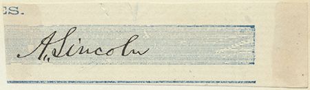 (1809-1865) Sixteenth President of the United States who led the Union through the Civil War and emancipated the slaves, assassinated. Gorgeous signature cut from a check, neatly mounted. Very good condition, ideal for display.