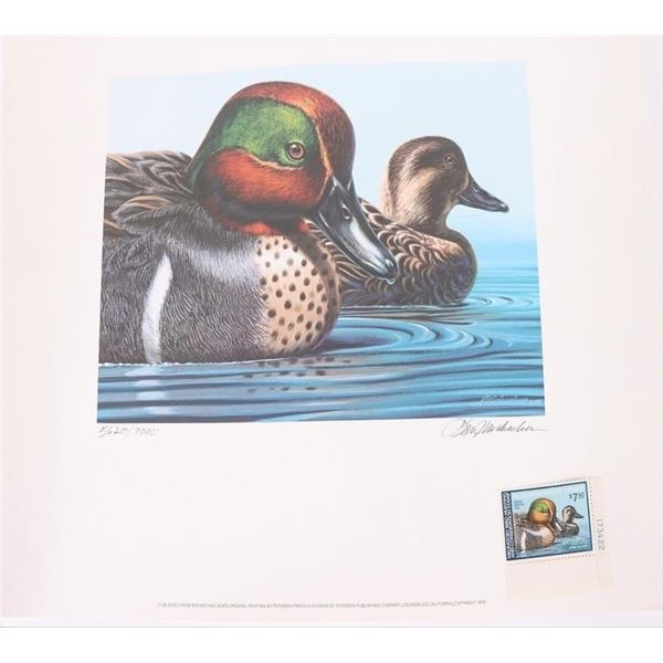 Ken Michaelson (1936-Current, American) 1979 Federal Duck Stamp Print with one federal stamp. Print is signed and limited to 5620/7000. Winged Teal. B