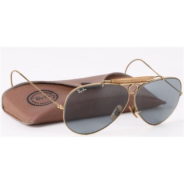 Vintage Ray Ban Bausch & Lomb sunglasses with leather case. Shooter glasses. Size: 5.5" Length Condition: Wear commensurate with age.