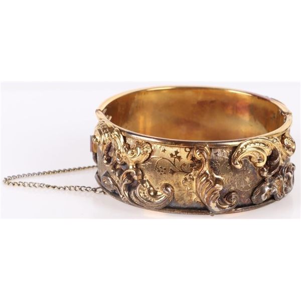 Vintage ornate gold-toned Victorian-style ladies bangle bracelet. Size: 8.0" Length Condition: Very fine.