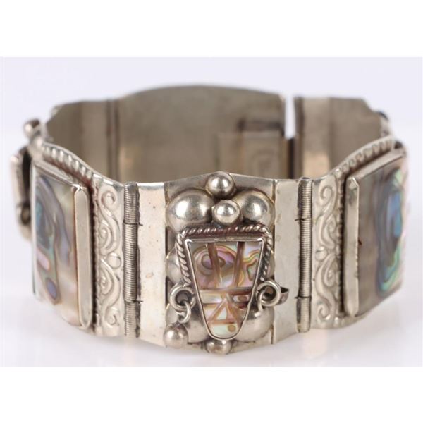 ABALONE AZTEC MEXICO STERLING SILVER BRACELET
