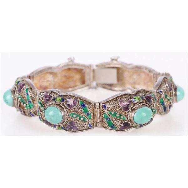 VINTAGE STERLING TURQUOISE ENAMELED BRACELET