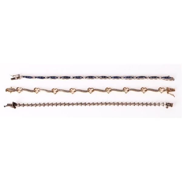 Sterling silver ladies collectible bracelets - lot of 3. Stone Type: CZ Weight: 7.0" length Size: 25.0 Grams Condition: Very fine.