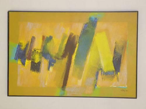 ABSTRACT OIL ON CANVAS TITLED "TENTH STREET DAYS" BY JOHN HENRY DATED 2/12/83 (24" X 36") - GOOD CONDITION