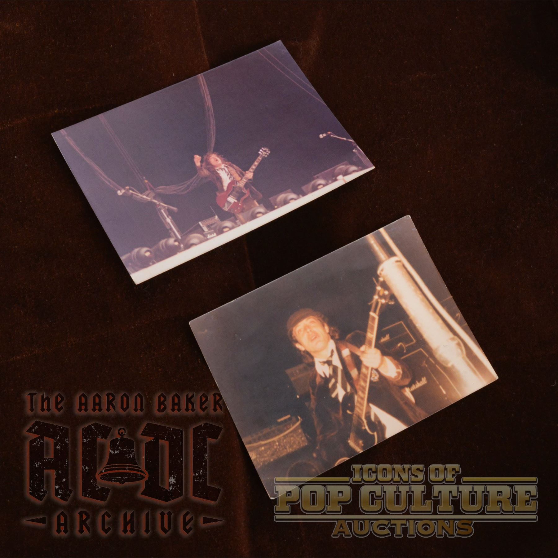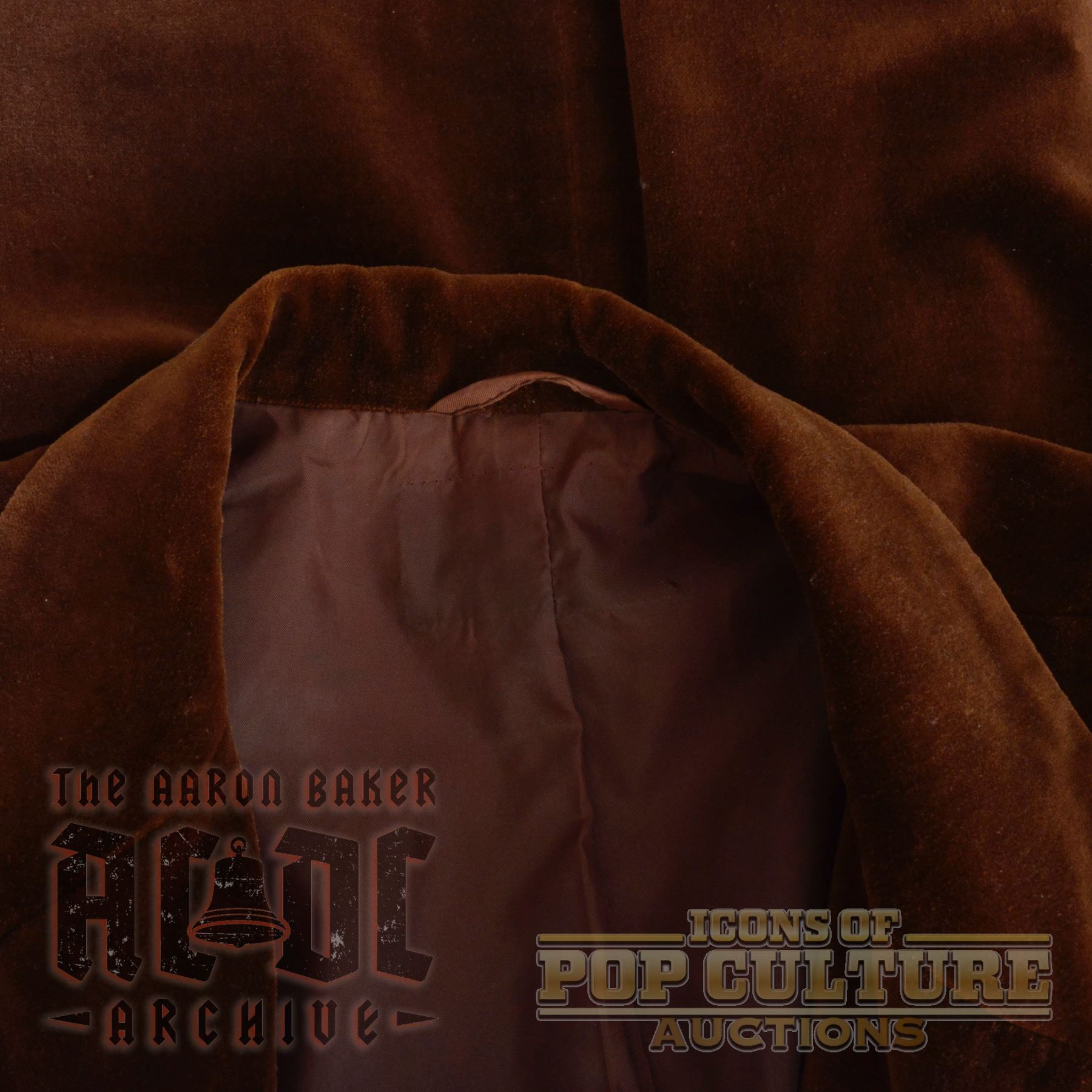 Accompanying the jacket are two original 3" x 5" color photographs showing Angus performing live in a similar velvet blazer, further connecting this piece to his distinctive performance style. With its elegant vintage design and direct ties to AC/DC’s explosive live legacy, this jacket represents an extraordinary opportunity to own a piece of genuine rock ’n’ roll history.
