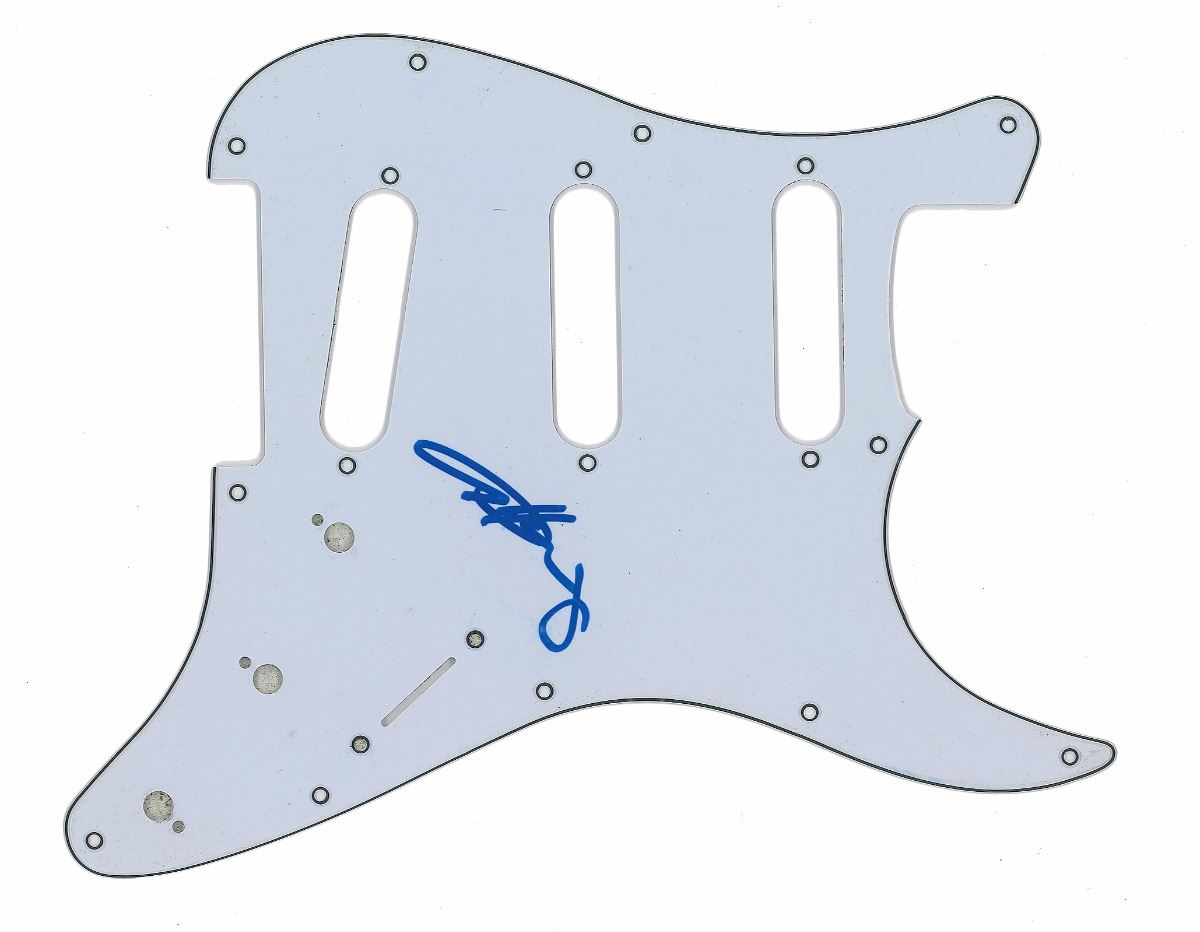 White Stratocaster-style pickguard, signed in blue felt tip by Angus Young. In fine condition.