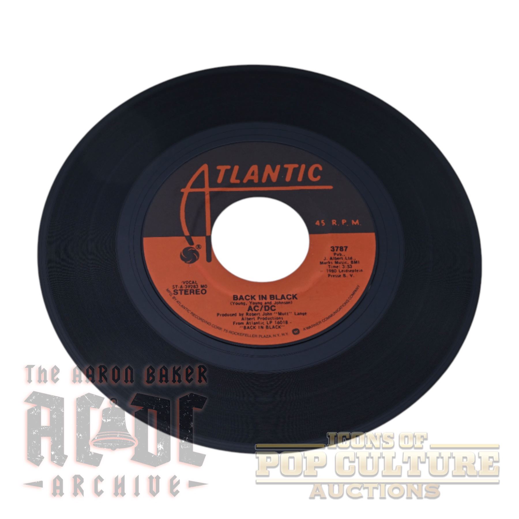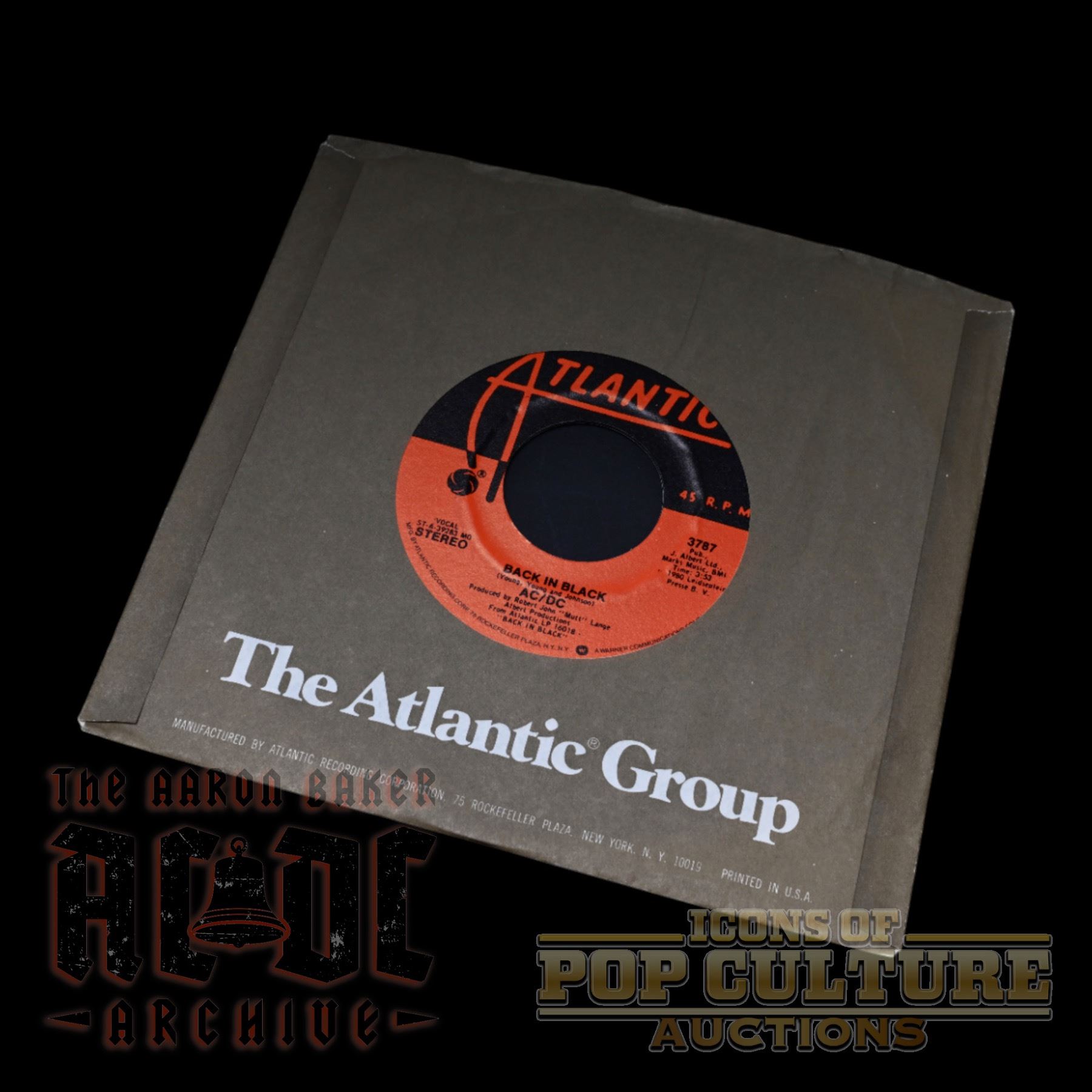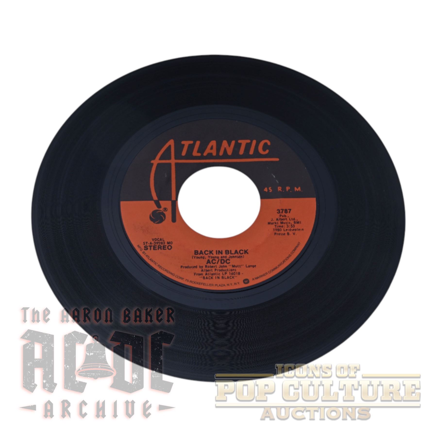 An original U.S. pressing of the AC/DC single Back in Black, catalog number 3787 on Atlantic Records, released in 1980. Written by Brian Johnson, Angus Young, and Malcolm Young, the single was produced by Robert John “Mutt” Lange. It appears as the second U.S. single from the band’s celebrated Back in Black album. The song was a tribute to their lead singer Bon Scott, who had passed earlier that year, and marked a major entry in their catalog under new frontman Brian Johnson.