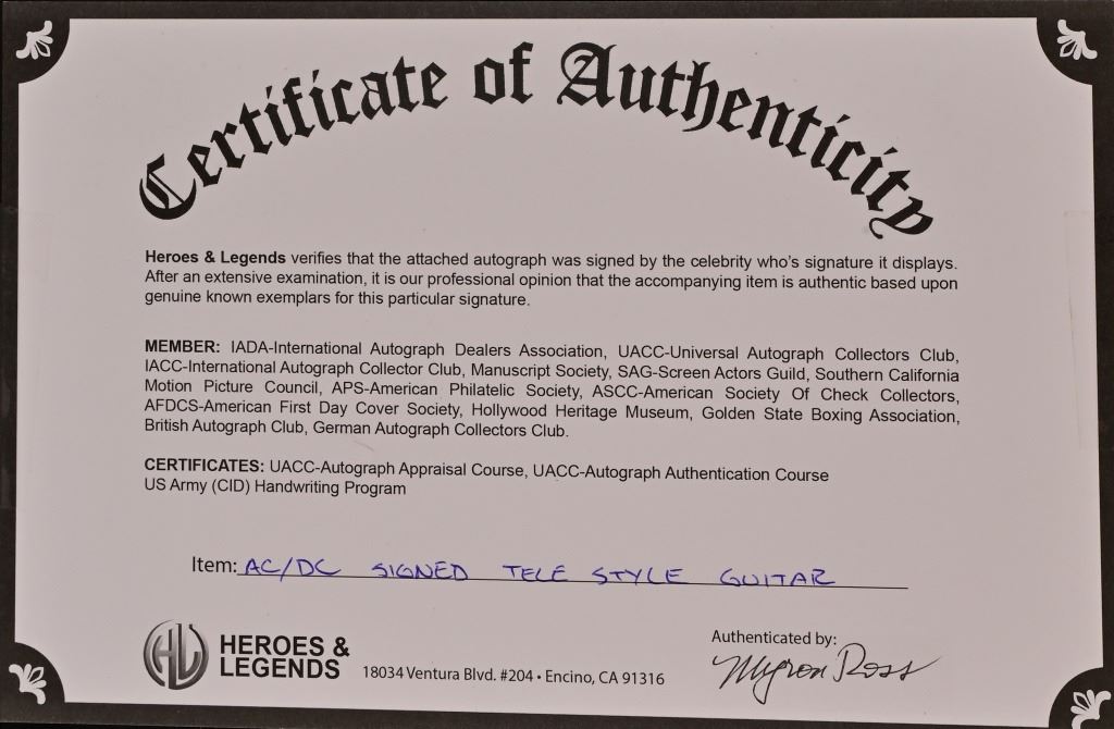 AC/DC signed guitar autographed by Brian Johnson, Angus Young, Malcolm Young, Cliff Williams and Phil Rudd. HL21202