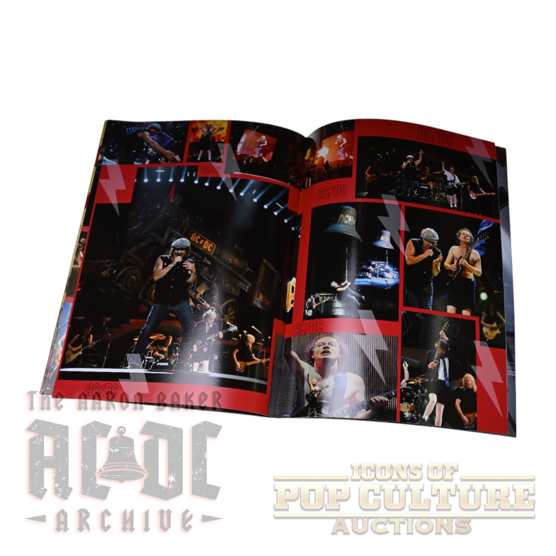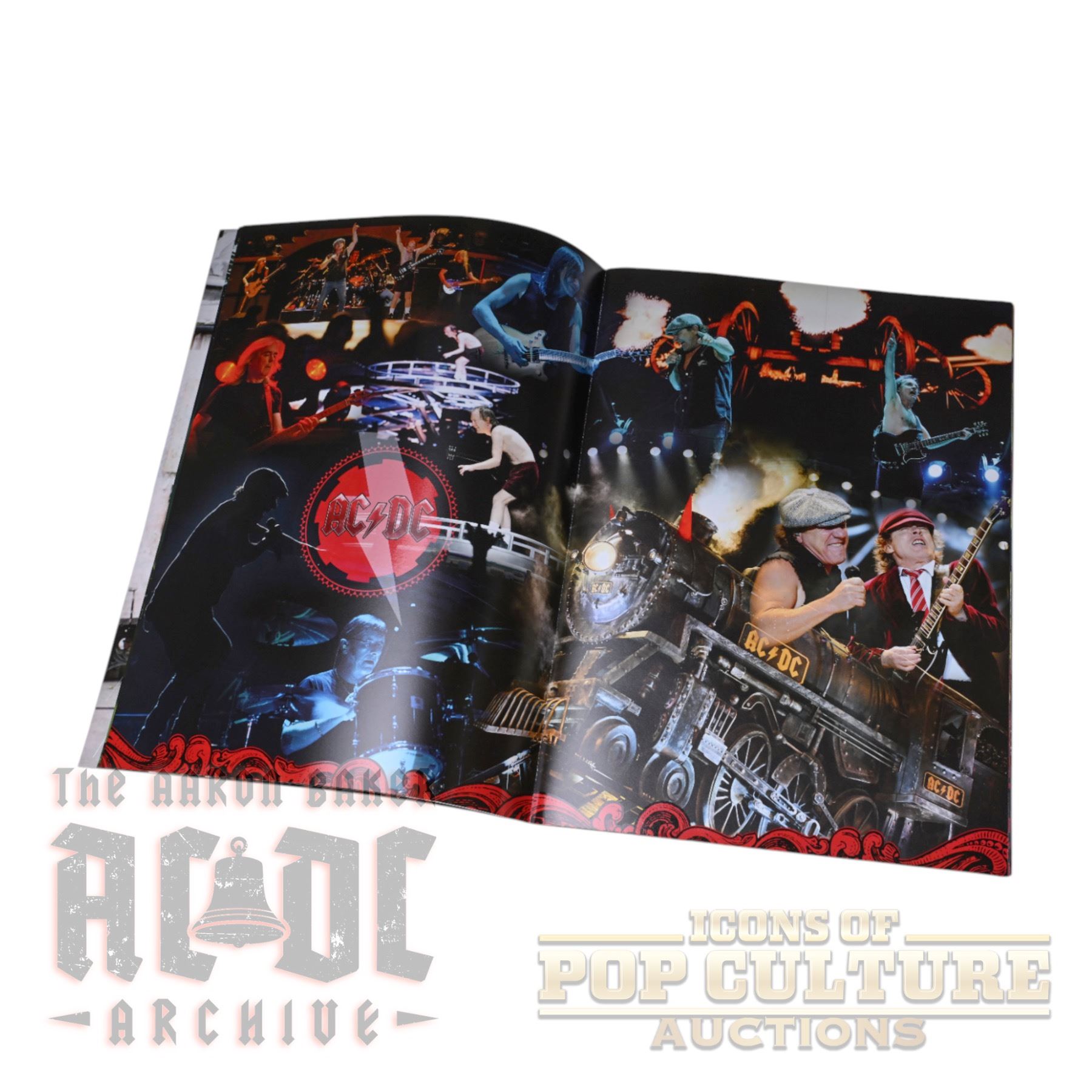 This is the official tour book from AC/DC’s Black Ice World Tour of 2008/2009, measuring 13" x 9.5". The program is filled with full-color photos of the band on stage, promotional artwork, and tour-themed graphics highlighting Angus Young, Brian Johnson, Malcolm Young, Cliff Williams, and Phil Rudd. Inside are striking live shots of the band performing alongside the massive stage production elements, including the iconic train and bell visuals associated with the tour. This program captures the energy and scale of one of AC/DC’s most successful global tours.
