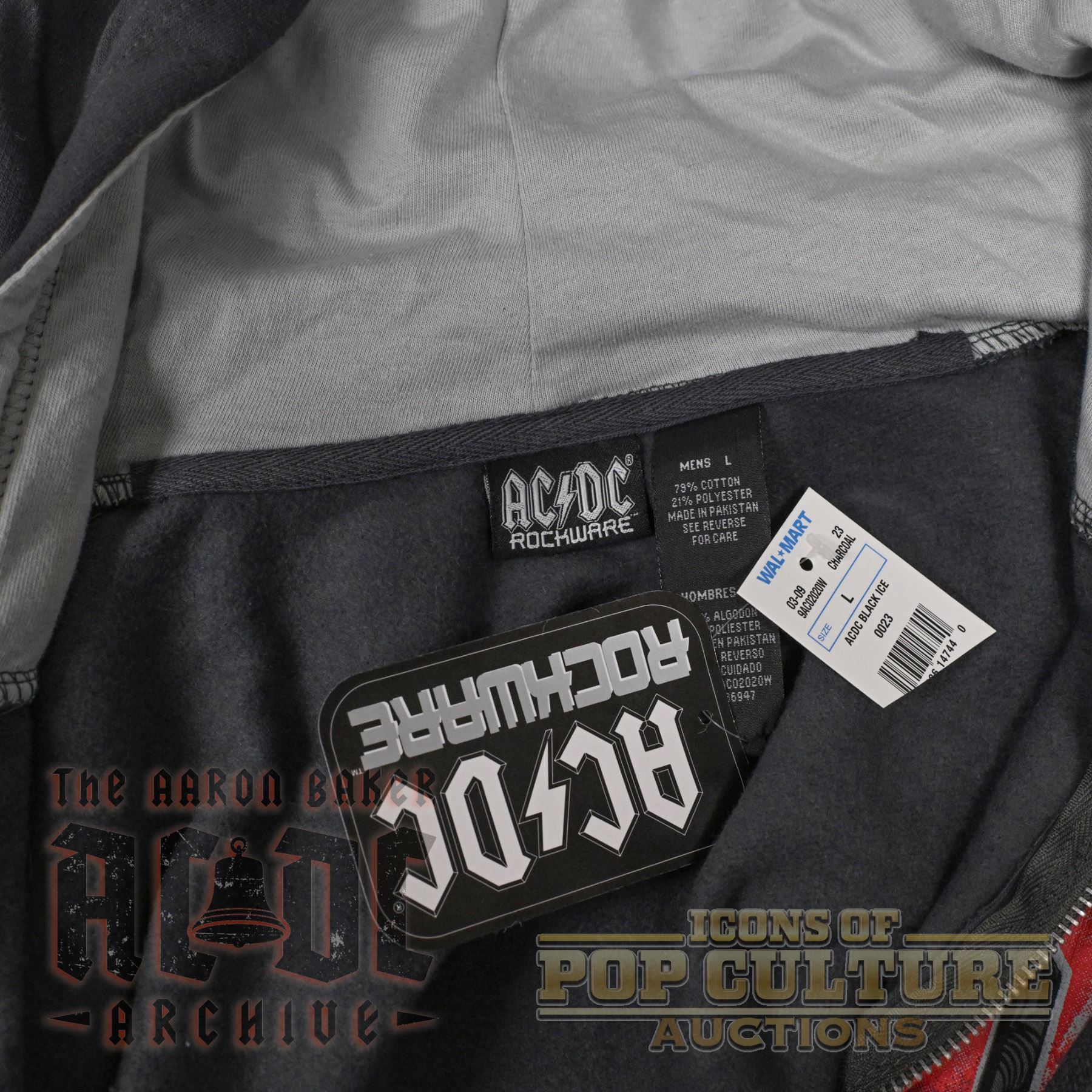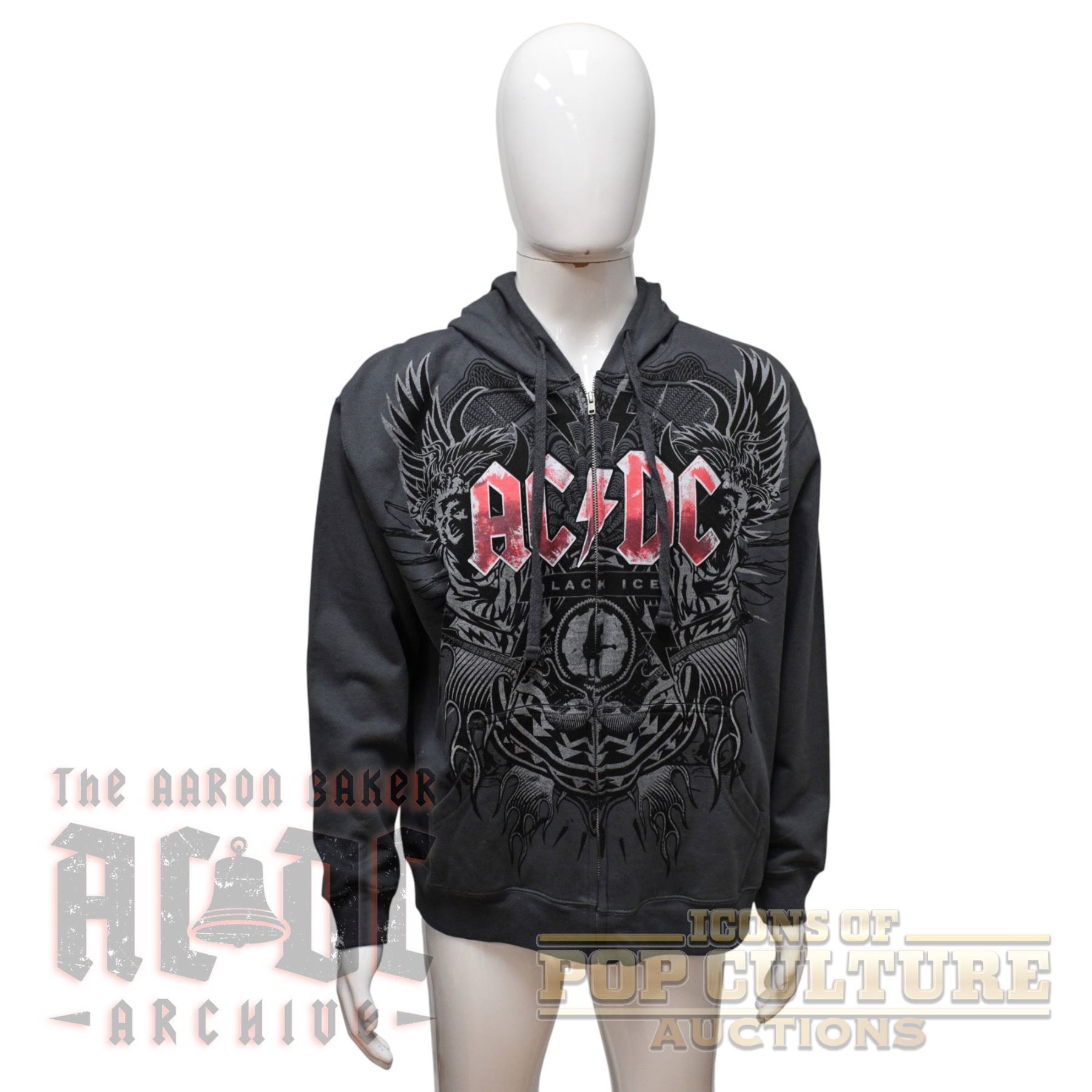Officially licensed AC/DC Black Ice zip-up hoodie produced by Rockware, issued around the band’s 2008–2010 Black Ice World Tour. This size Large men’s hoodie features the bold red and silver AC/DC logo above intricate winged and lightning-themed artwork inspired by the Black Ice album cover, which marked the band’s triumphant return after an eight-year recording hiatus. Made from a soft cotton-polyester blend, the design embodies the hard-edged aesthetic of one of AC/DC’s most visually striking eras. Distributed through retail outlets such as Walmart under Rockware’s official line of AC/DC merchandise, this hoodie stands as a wearable tribute to the band’s enduring power and the global success of Black Ice, an album that topped charts in over 20 countries.