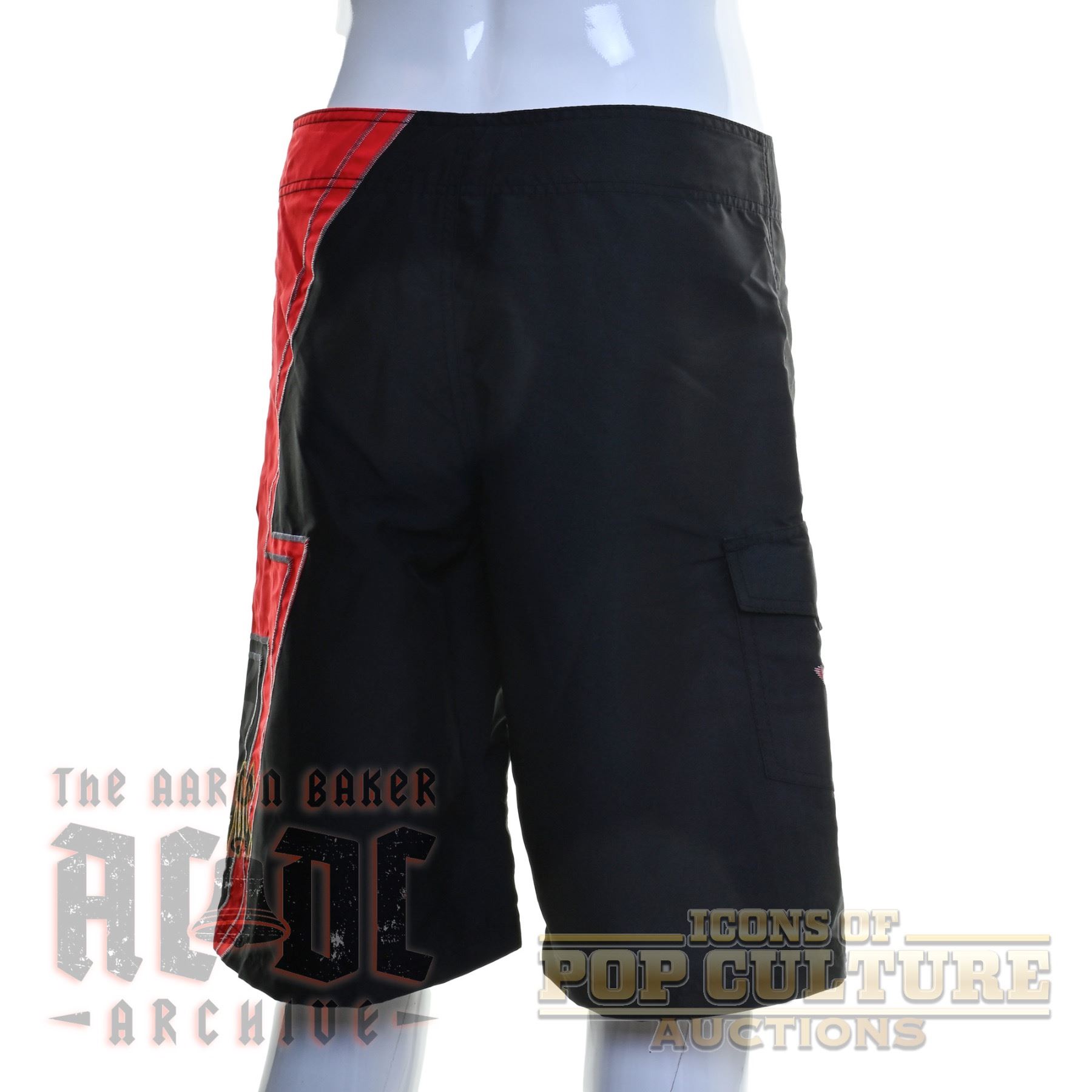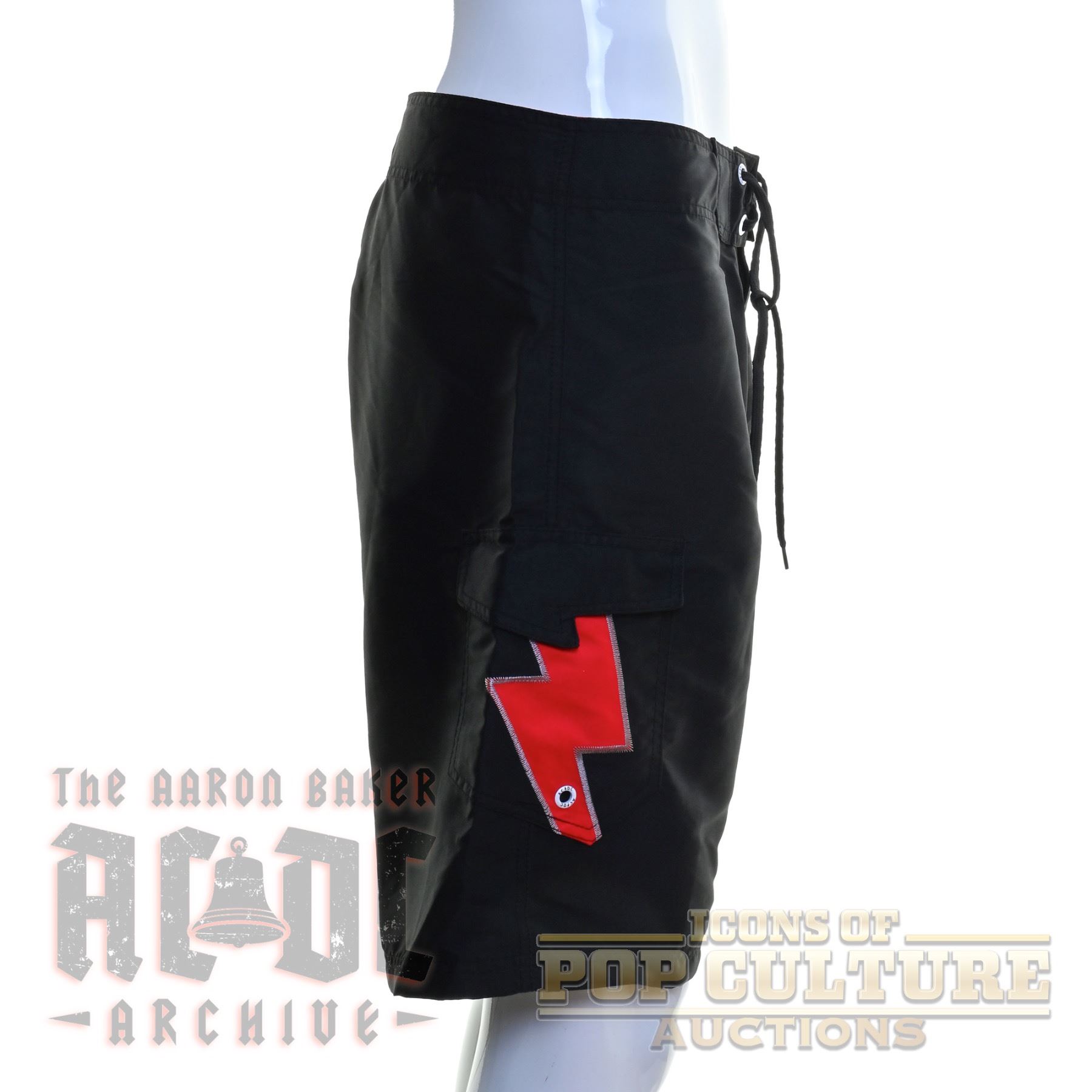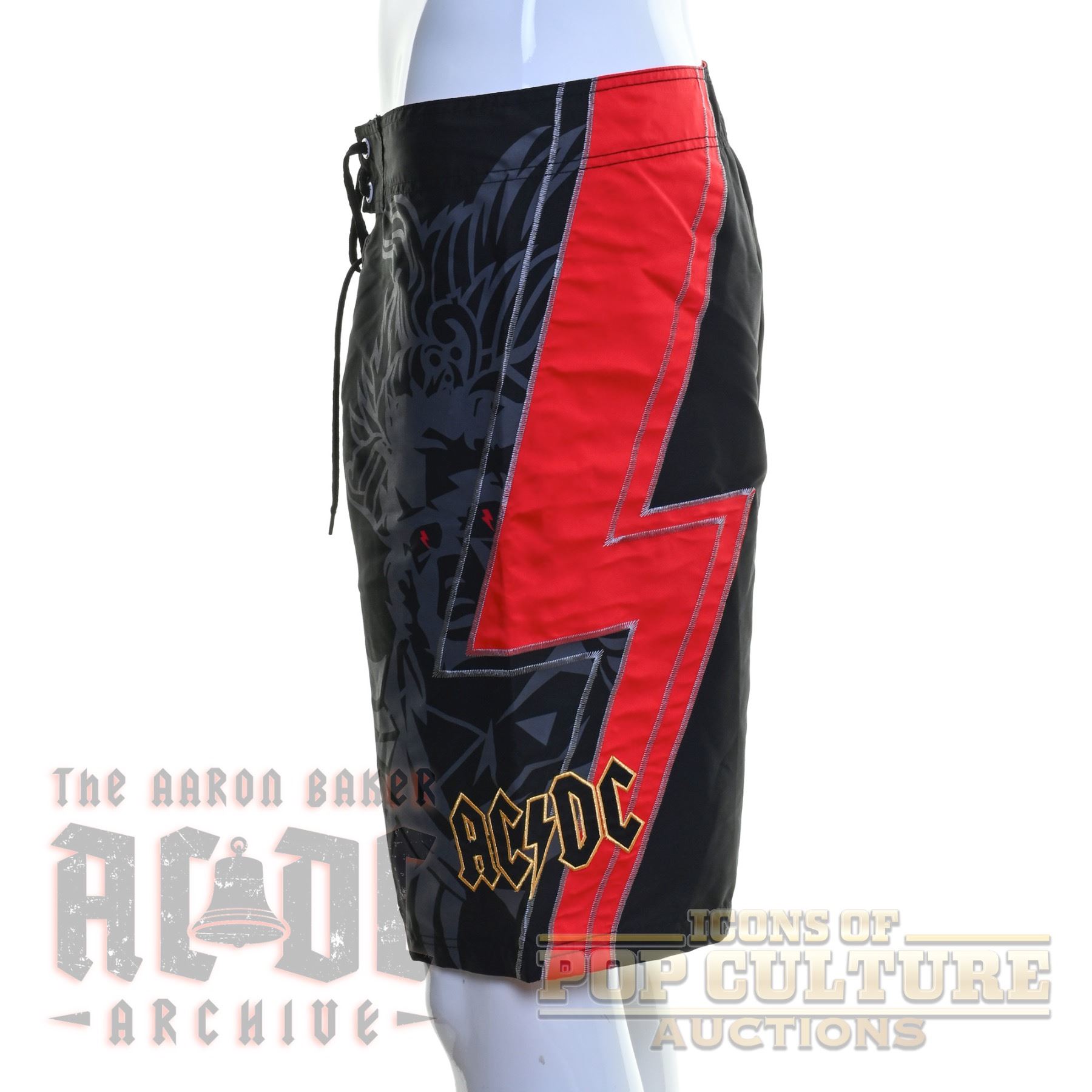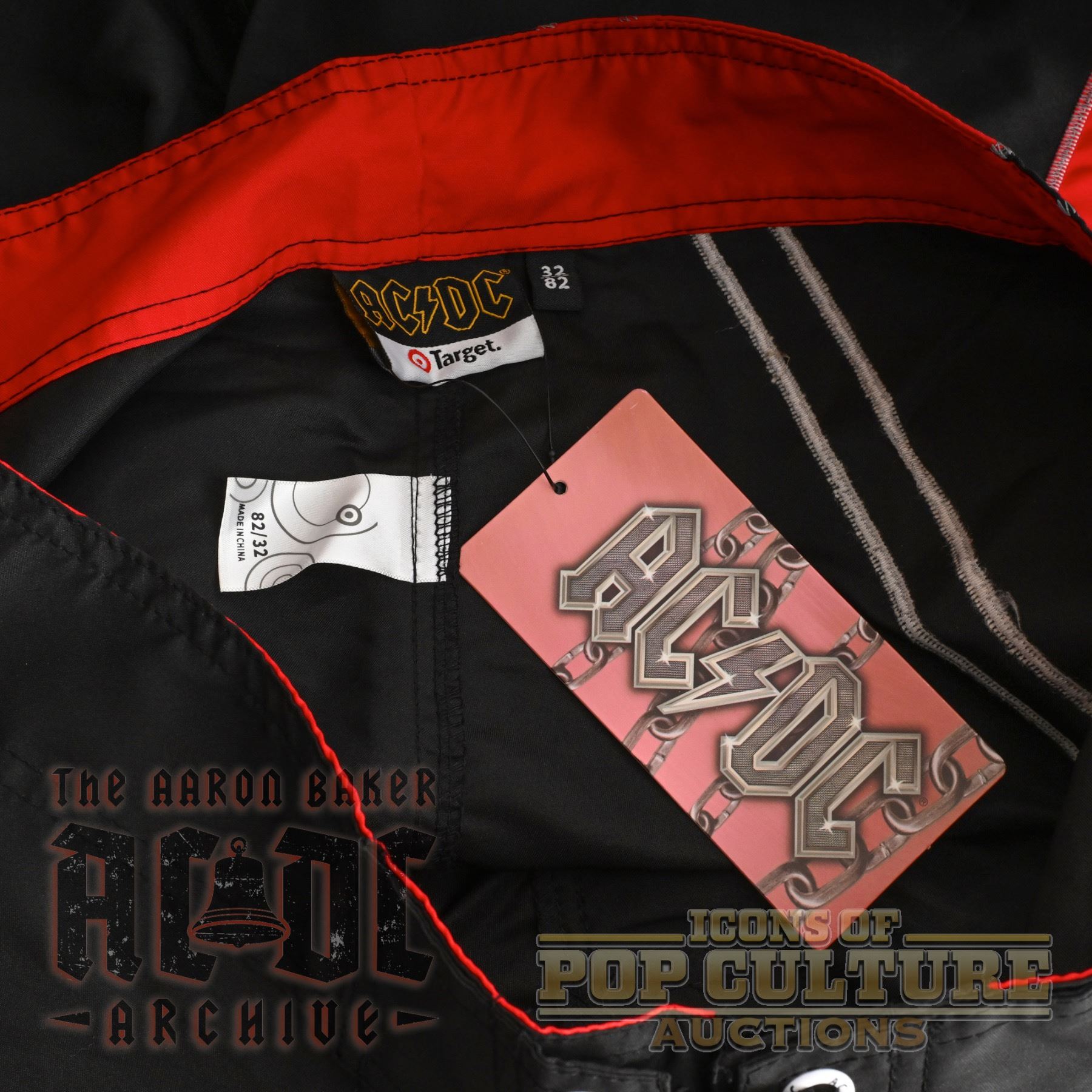Offered here is a pair of officially licensed AC/DC board shorts, new with original tag. These black and red shorts feature bold graphics, including the band’s iconic logo and a large lightning bolt design along the side. The shorts include lace-up front closure, side pocket, and branded details inside the waistband. Produced for Target as part of their exclusive AC/DC merchandise line, these shorts are a stylish and functional piece of fan apparel, perfect for collectors or casual wear.