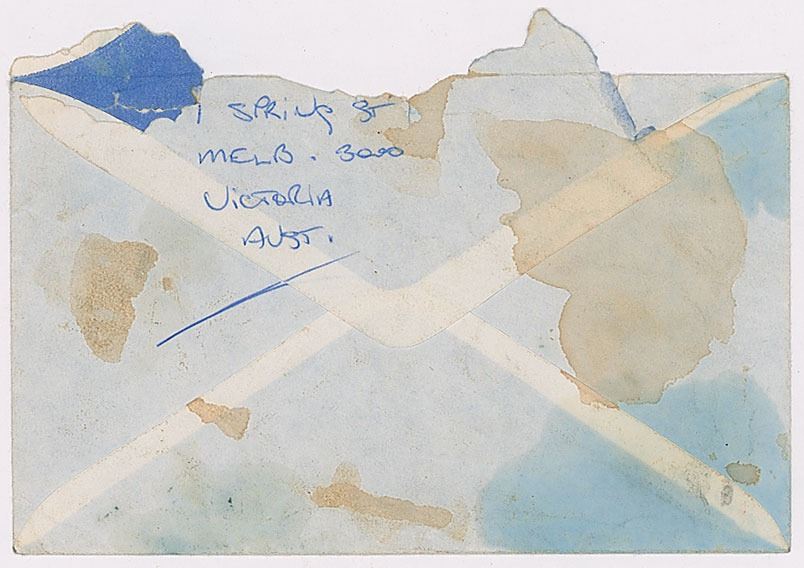 We’re not living at Lansdowne Rd no more cause the lease run out. We’re staying near the start of the Tullamarine F/Way a place called Freeway Gardens but only for a couple of weeks & then it’s off to Whyalla & Adelaide. I tink [sic] we’ll be living in Sydney soon & try to get the band as big up there as we are down ‘ere. We all prefer Sydney to Melb but we wish we could drop in & see you over there instead. This country’s driving us sane. Bye for now Mary & keep on enjoying yourself." Bon adds on the reverse: "The lads say hello!!!" In fine condition, with some light creasing.