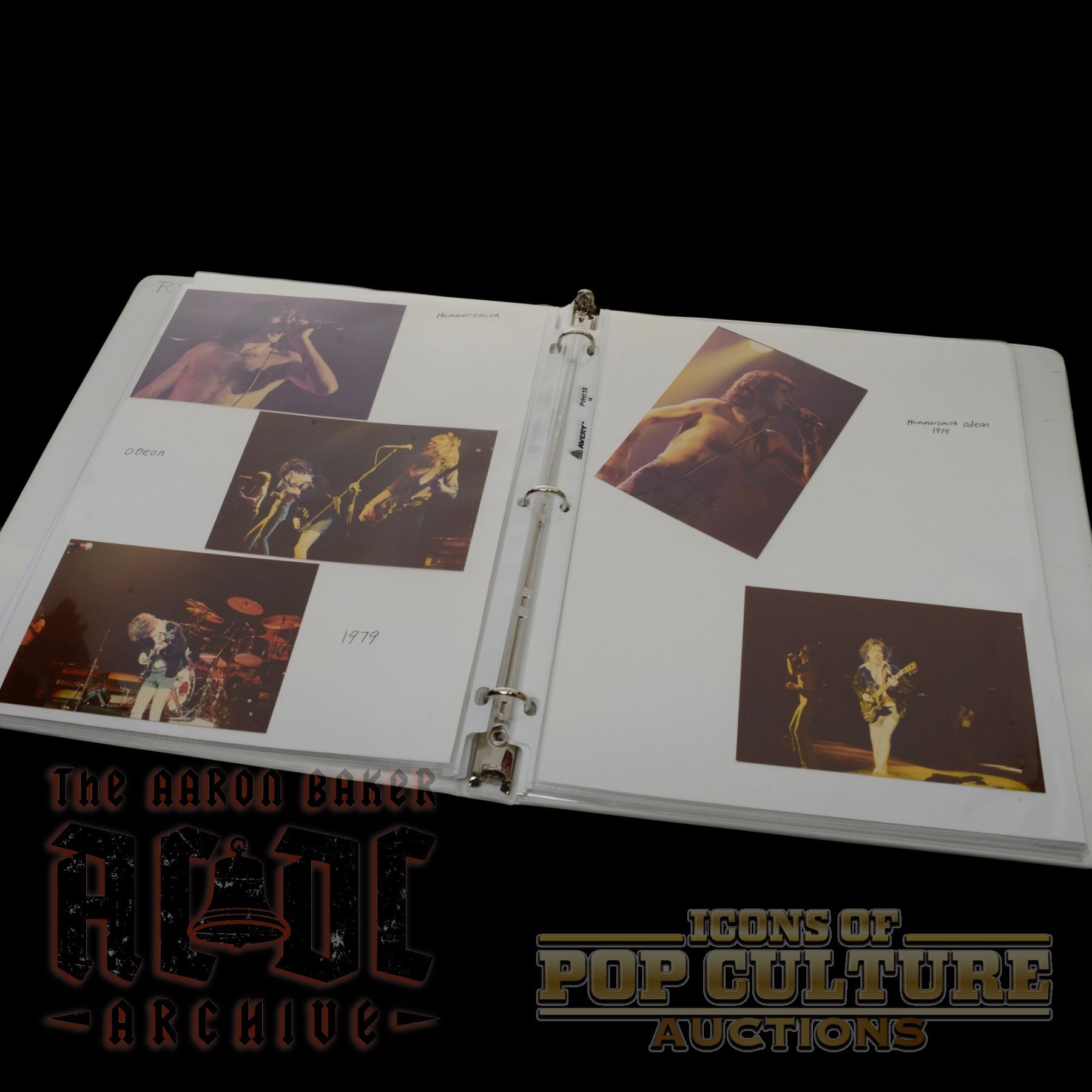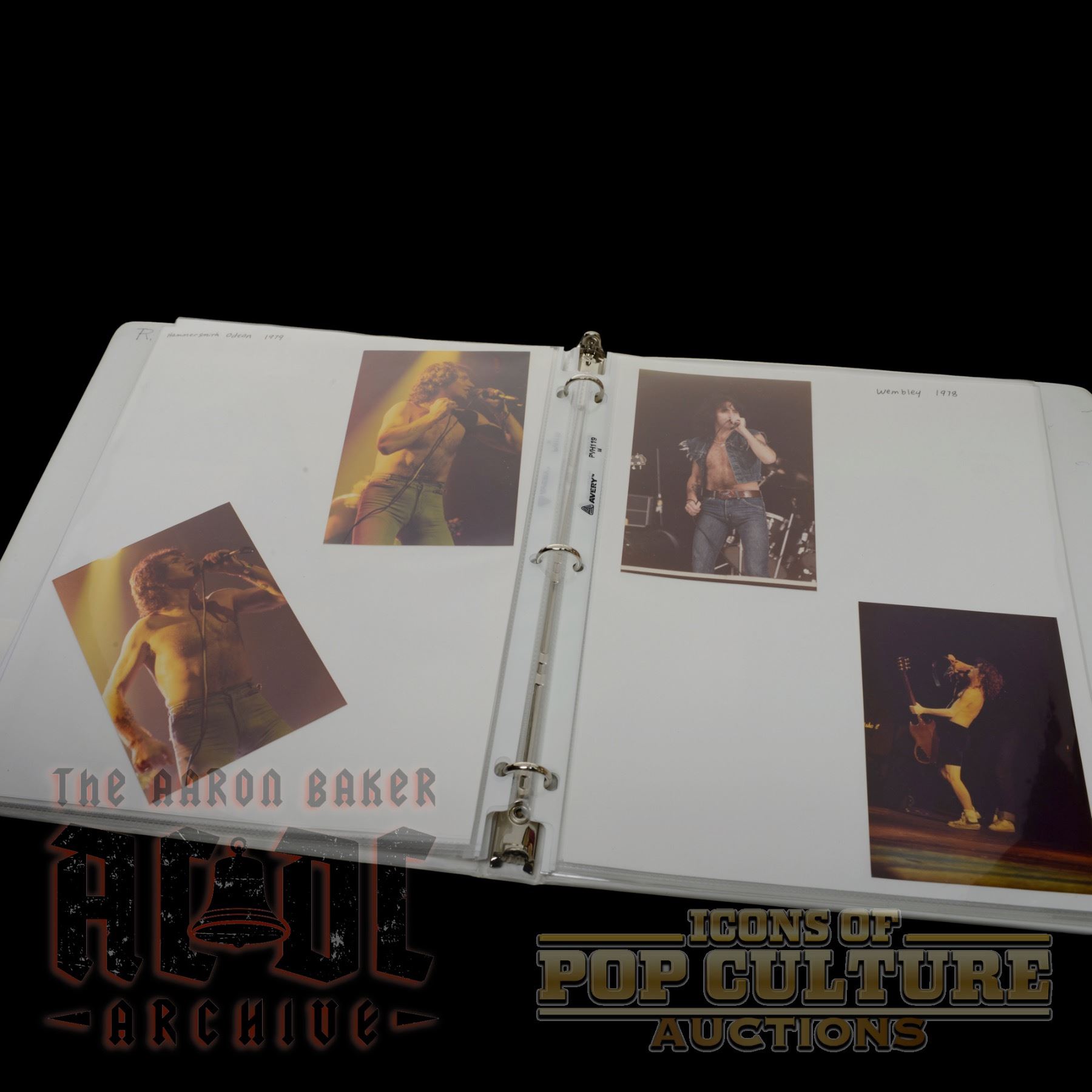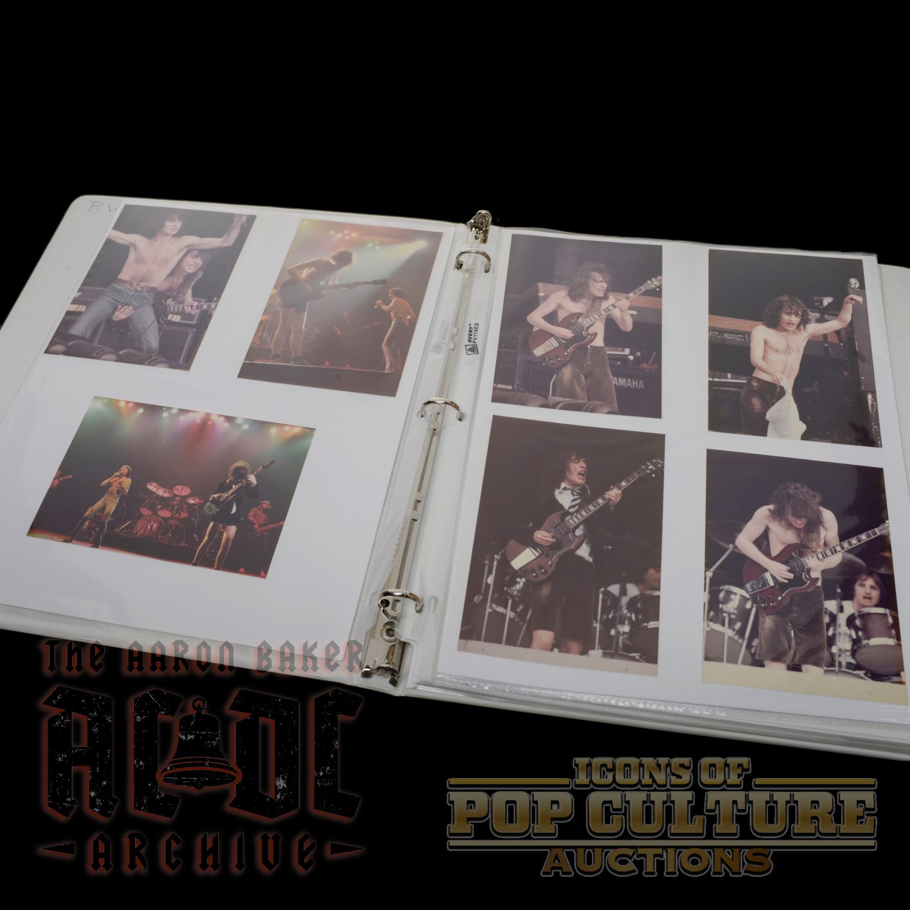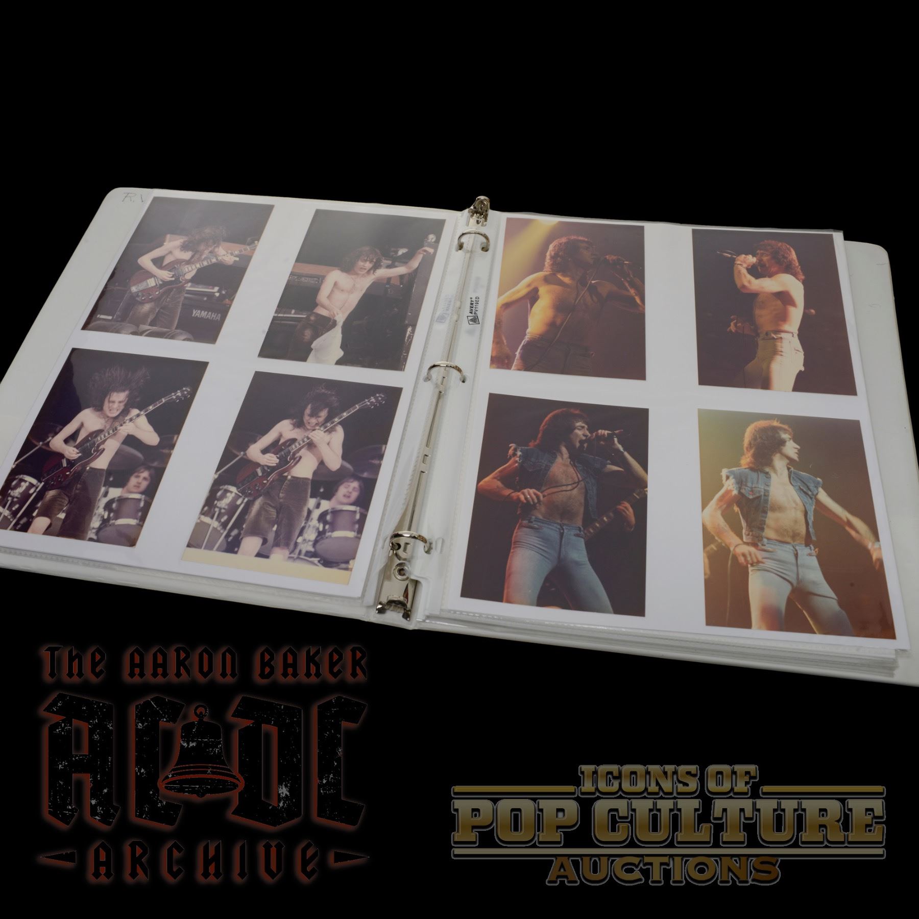 Presented here is a remarkable collection of 47 original photographs capturing AC/DC during the Bon Scott era, offering a vivid glimpse into the band’s electrifying live performances of the late 1970s. The images feature Bon Scott on stage in his iconic denim and bare-chested style, alongside Angus Young in his trademark schoolboy uniform and high-energy guitar poses. Several photographs are identified from performances at legendary venues such as Wembley (1978) and the Hammersmith Odeon (1979), documenting key moments in the band’s rise to global fame. This collection provides a rare and historic visual archive of AC/DC’s early years, showcasing the raw energy and charisma that defined their concerts and cemented their reputation as one of rock’s most powerful live acts.