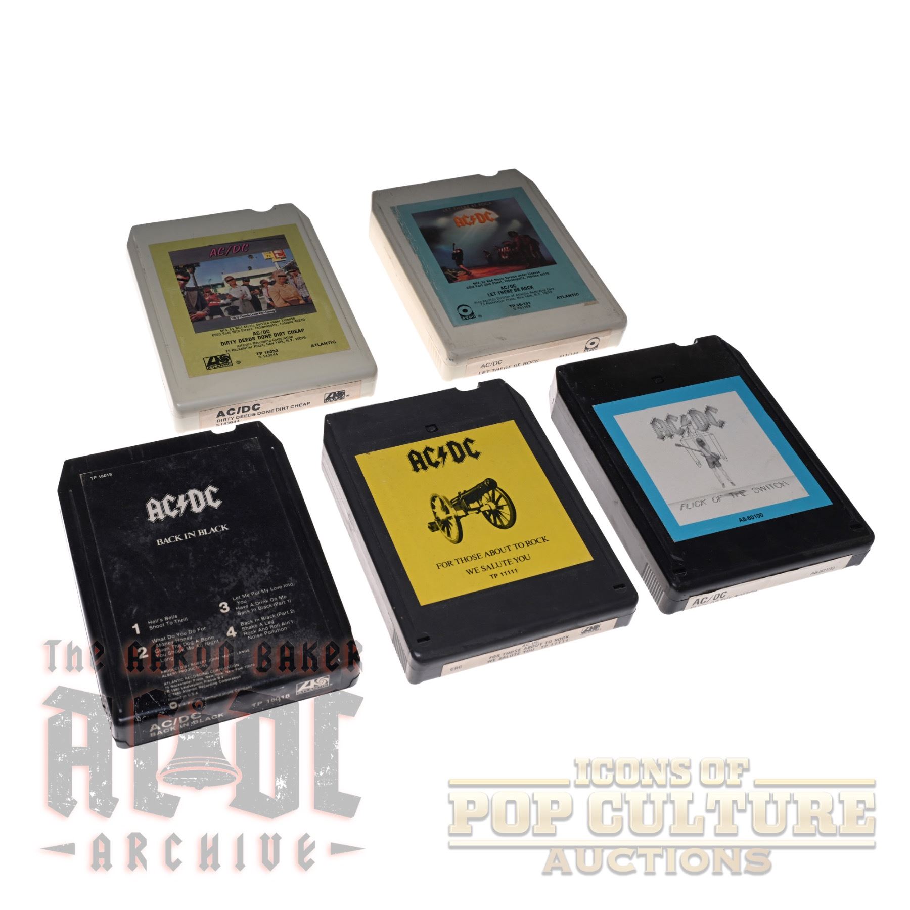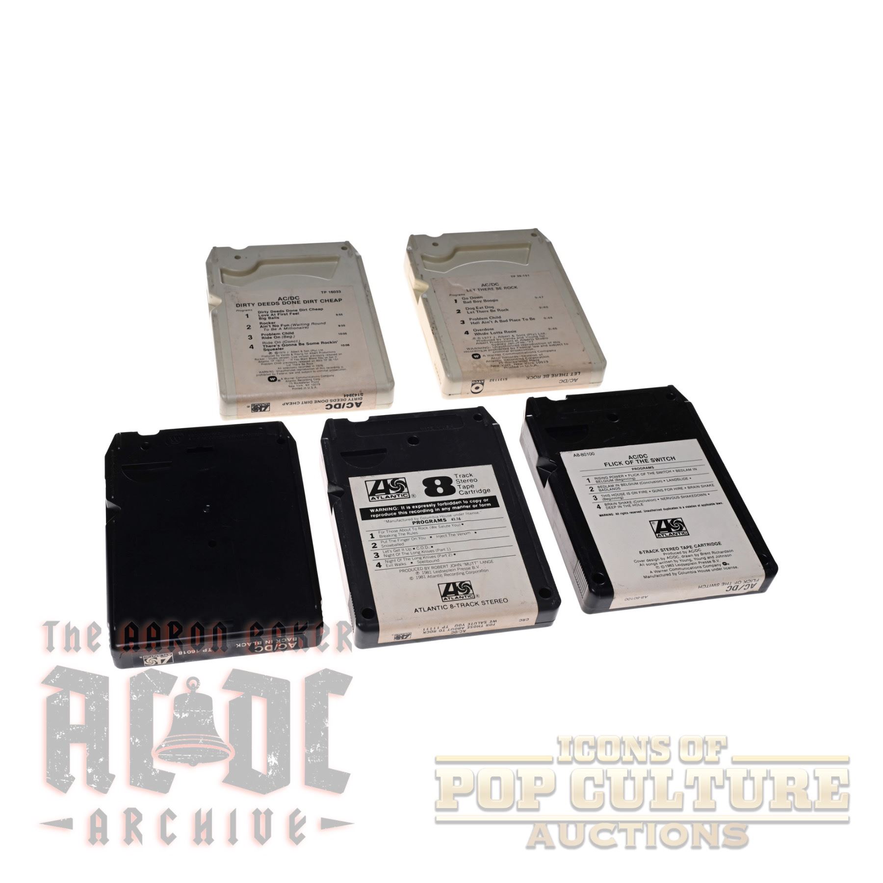 Offered here is a collection of AC/DC 8-track tapes featuring five classic albums from the band’s catalog. Included are Dirty Deeds Done Dirt Cheap, Highway to Hell, Back in Black, For Those About to Rock (We Salute You), and Flick of the Switch. These tapes represent a range of AC/DC’s most iconic releases spanning from the Bon Scott era through the early Brian Johnson years. Each 8-track captures the raw energy and timeless sound of the band in their original format, making this set a distinctive addition for collectors of both AC/DC memorabilia and vintage music media.