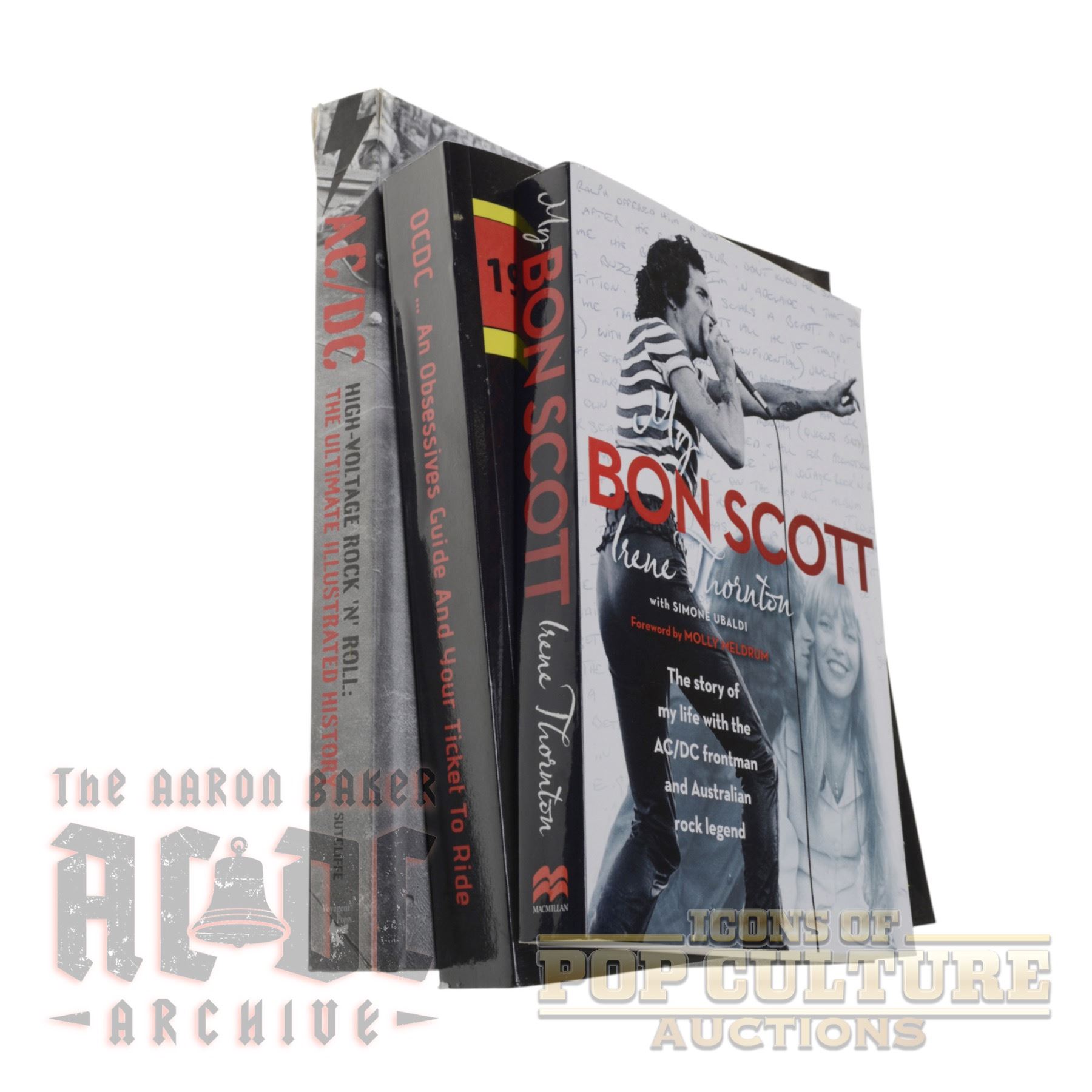 Offered here is a set of three books dedicated to the legacy of AC/DC. Included is AC/DC: High-Voltage Rock ’N’ Roll – The Ultimate Illustrated History by Phil Sutcliffe, a comprehensive and richly illustrated chronicle of the band’s career. Also included is OCDC: An Obsessive’s Guide and Your Ticket to Ride 1974–1996, a limited-edition fan guide packed with details from across the group’s history. Completing the collection is My Bon Scott by Irene Thornton, a personal biography recounting the life of AC/DC’s legendary frontman through the eyes of his former partner. Together, these volumes offer fans and collectors an in-depth look at the music, personalities, and enduring influence of one of rock’s most iconic bands.