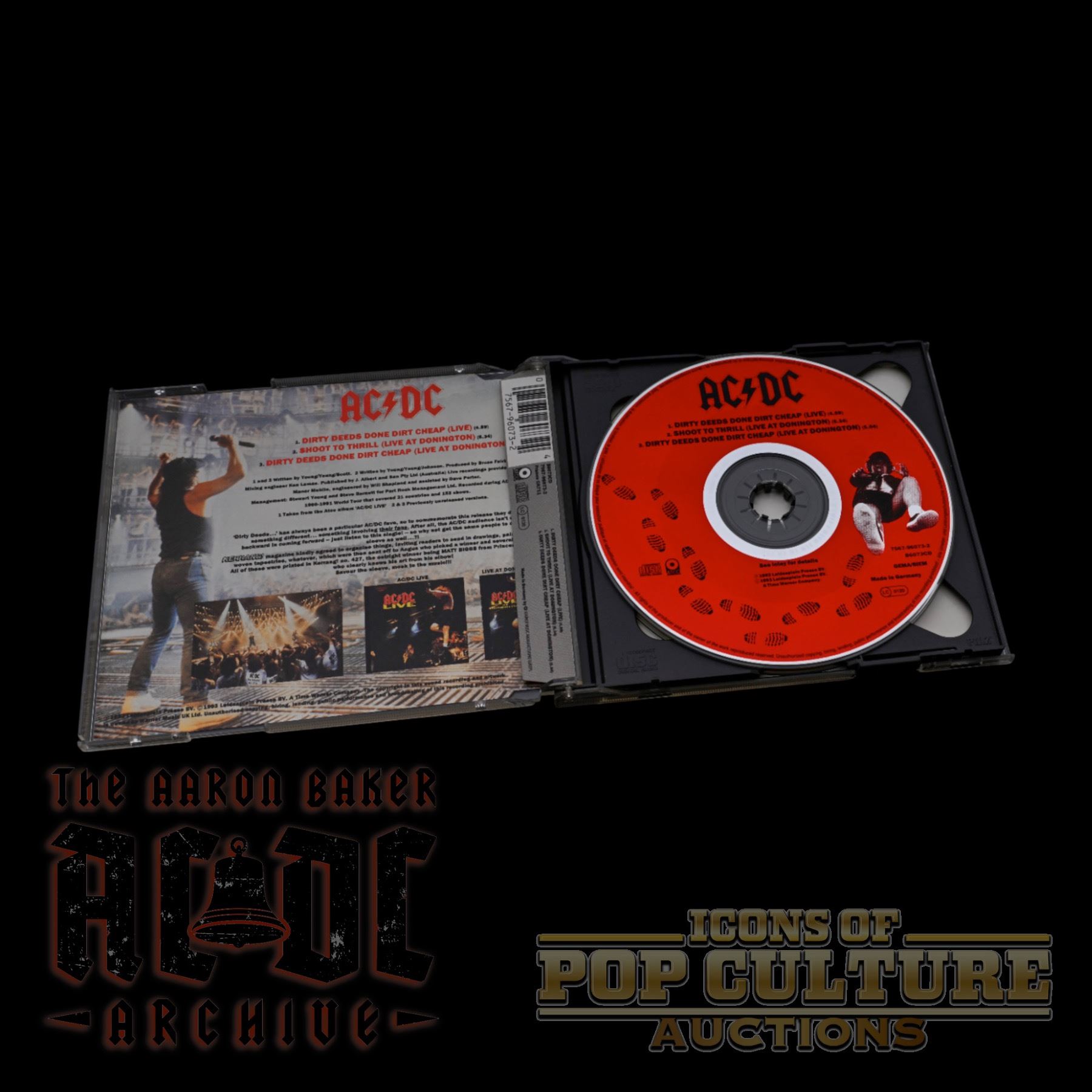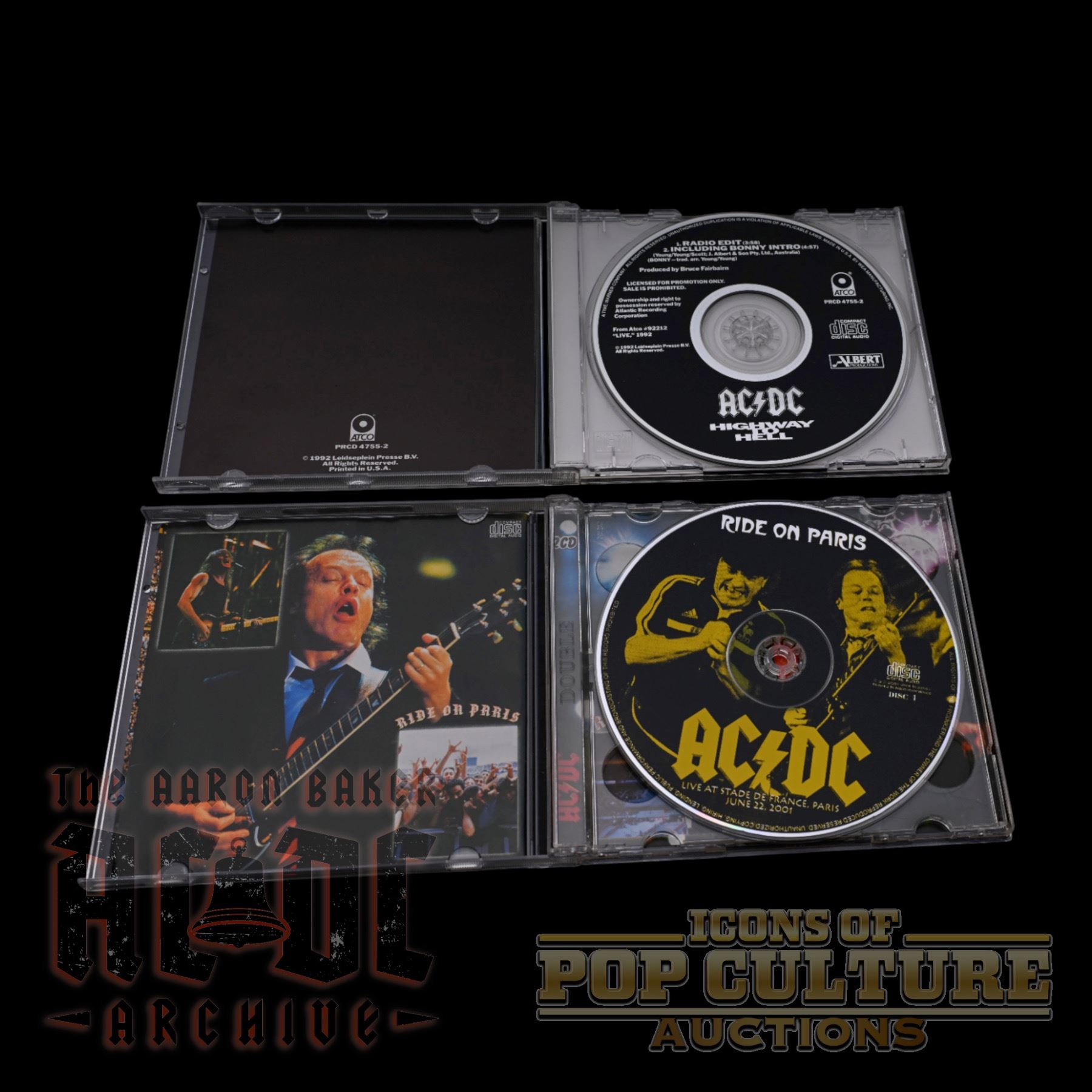 This lot features four AC/DC compact discs showcasing a mix of studio, live, and special edition releases. Included is Highway to Hell, the classic 1979 album that marked Bon Scott’s final studio appearance, and Cover You in Oil, a CD single taken from the 1995 album Ballbreaker. Also included is Ride on Paris, a two-disc live set recorded at Stade de France on June 22, 2001, capturing the band’s powerful performance in front of a massive crowd. Rounding out the set is The Interview, a limited release twin 2CD set featuring band interviews and insight into AC/DC’s legacy. Together, these discs highlight both iconic studio work and rare collector’s material.