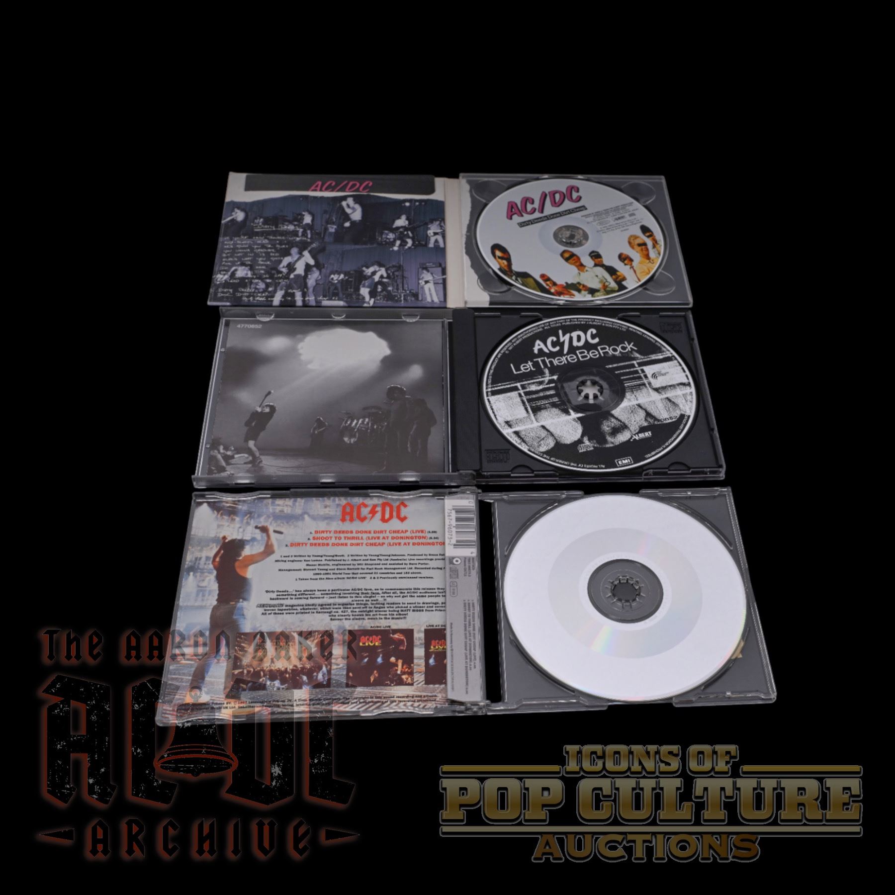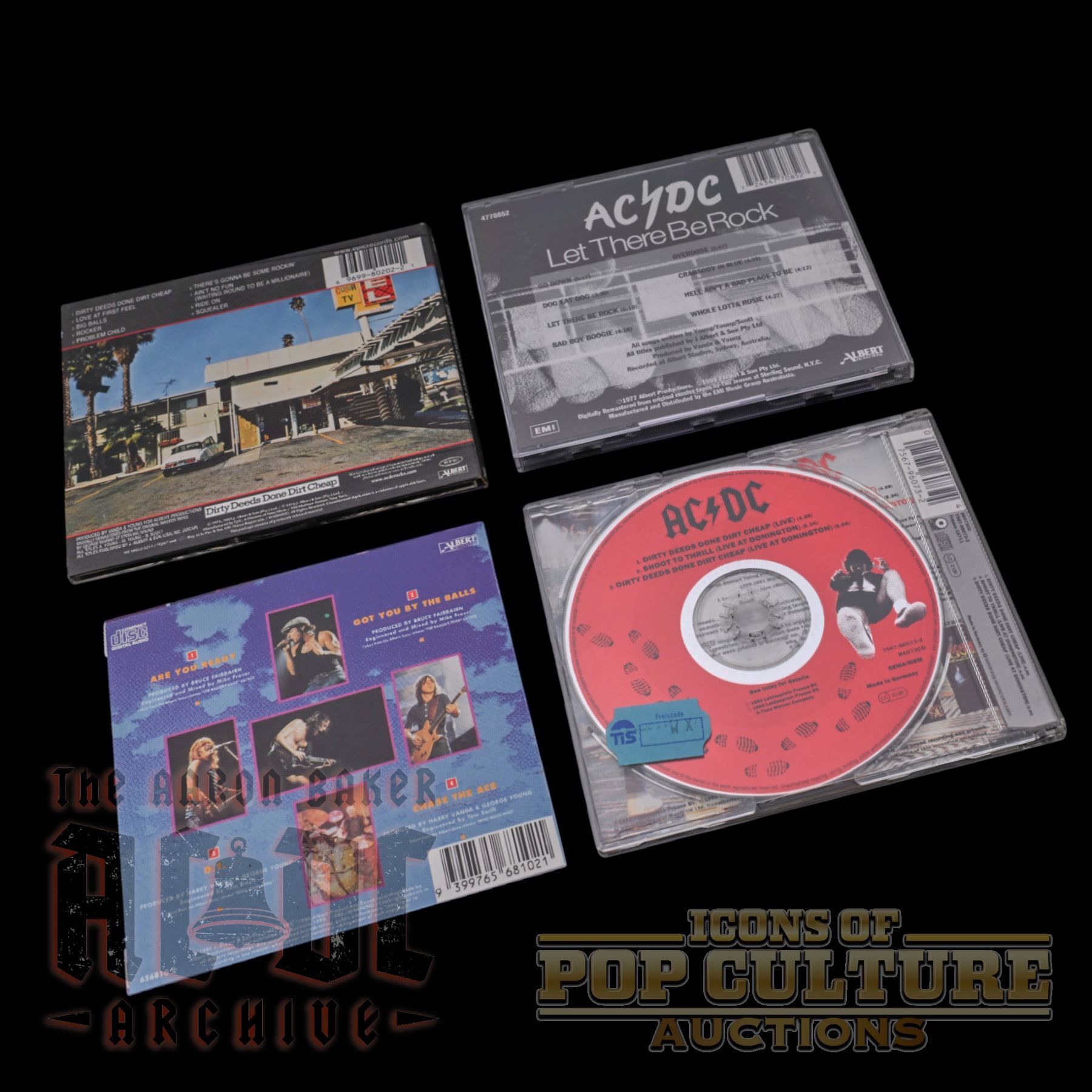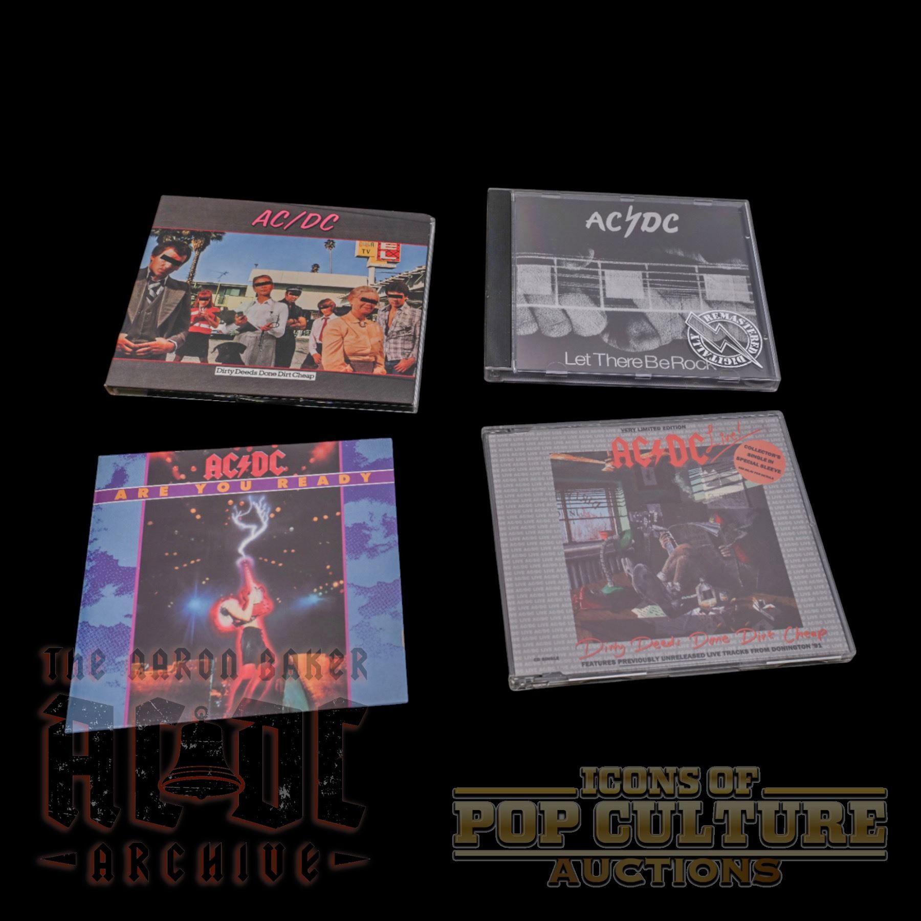 This lot features four AC/DC compact discs, including both full-length albums and single releases. Included is Dirty Deeds Done Dirt Cheap, the band’s 1976 classic with tracks like “Problem Child” and the title cut, along with Let There Be Rock (1977), one of the defining Bon Scott-era albums. Also featured is the Are You Ready CD single from 1990, backed with tracks such as “Got You by the Balls” and “Chase the Ace,” and a special limited edition version of Dirty Deeds Done Dirt Cheap that contains previously unreleased live recordings. This set brings together iconic studio material and collectible editions, offering a solid mix for AC/DC fans and collectors.