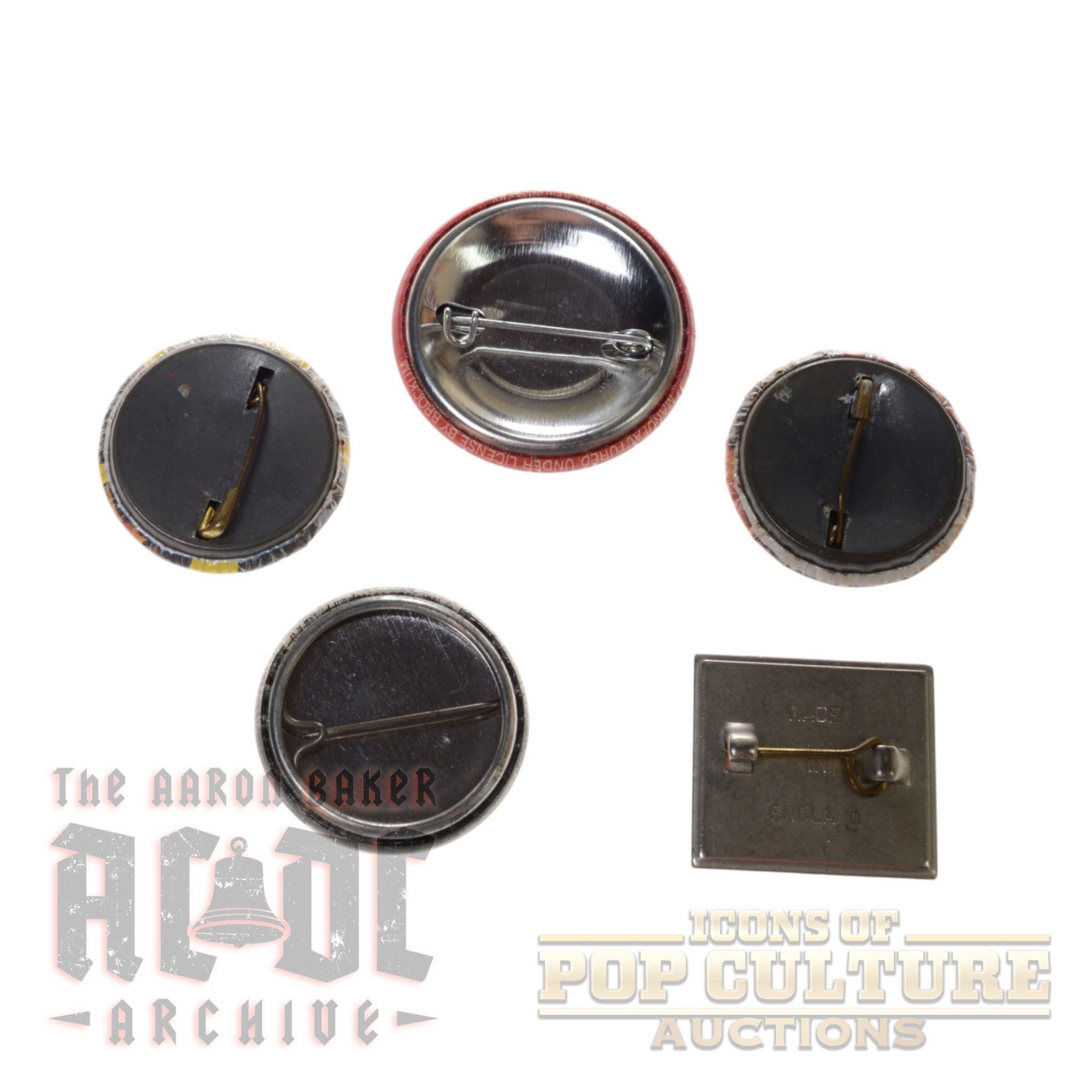 This collection of five AC/DC pins represents a variety of officially licensed and fan-favorite designs produced over the years. These pins were sold as band merchandise at concerts, record stores, and specialty shops, allowing fans to showcase their love for the legendary rock band.