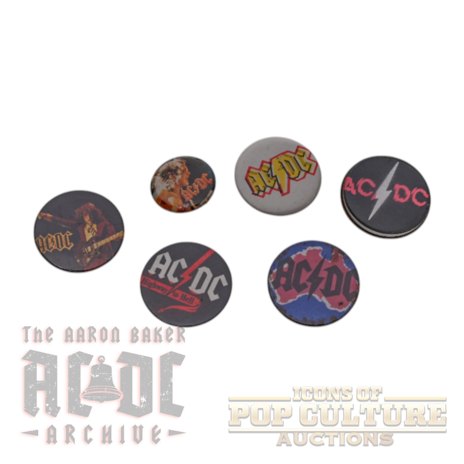 This collection of six AC/DC pins represents a variety of officially licensed and fan-favorite designs produced over the years. These pins were sold as band merchandise at concerts, record stores, and specialty shops, allowing fans to showcase their love for the legendary rock band.