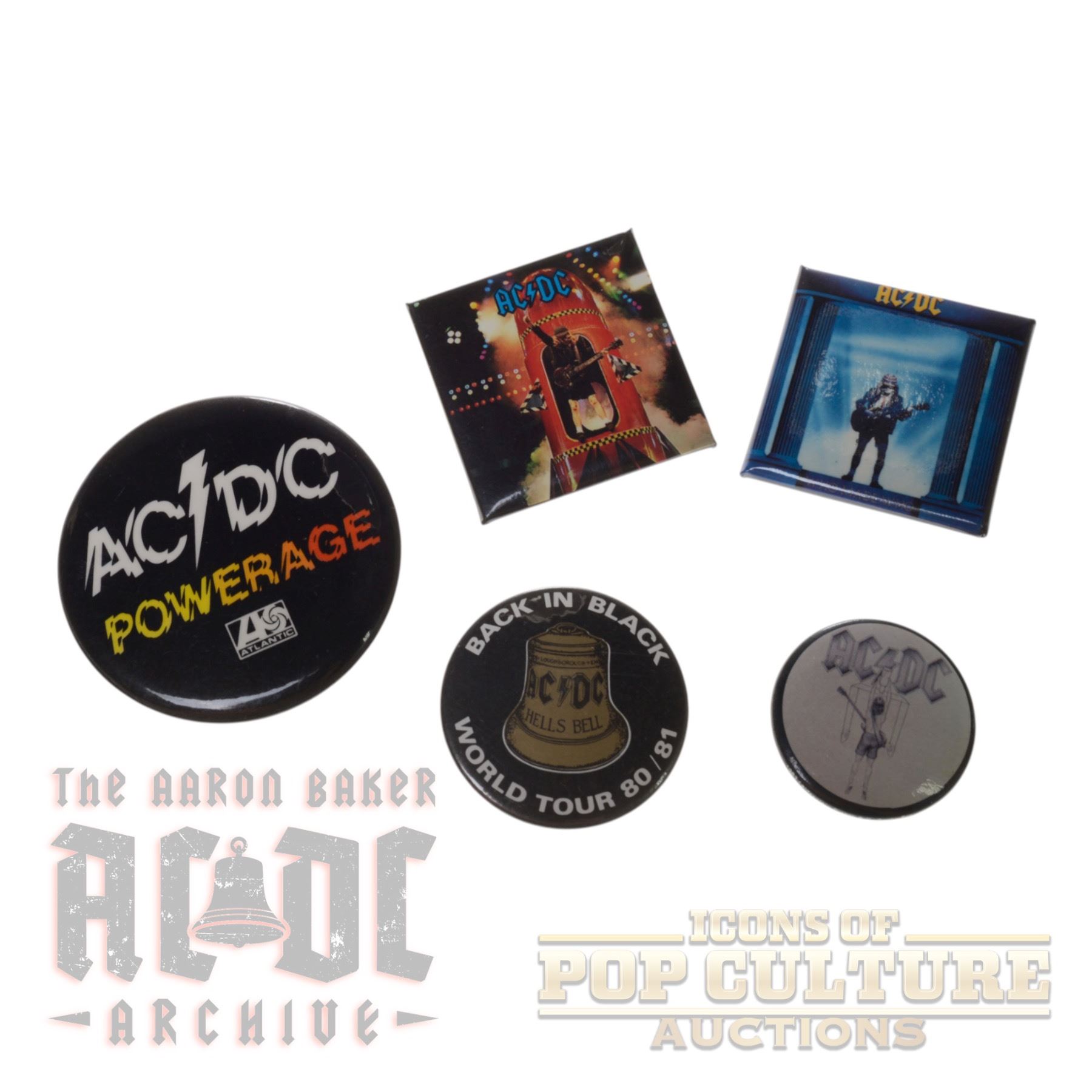 This collection of five AC/DC pins represents a variety of officially licensed and fan-favorite designs produced over the years. These pins were sold as band merchandise at concerts, record stores, and specialty shops, allowing fans to showcase their love for the legendary rock band.