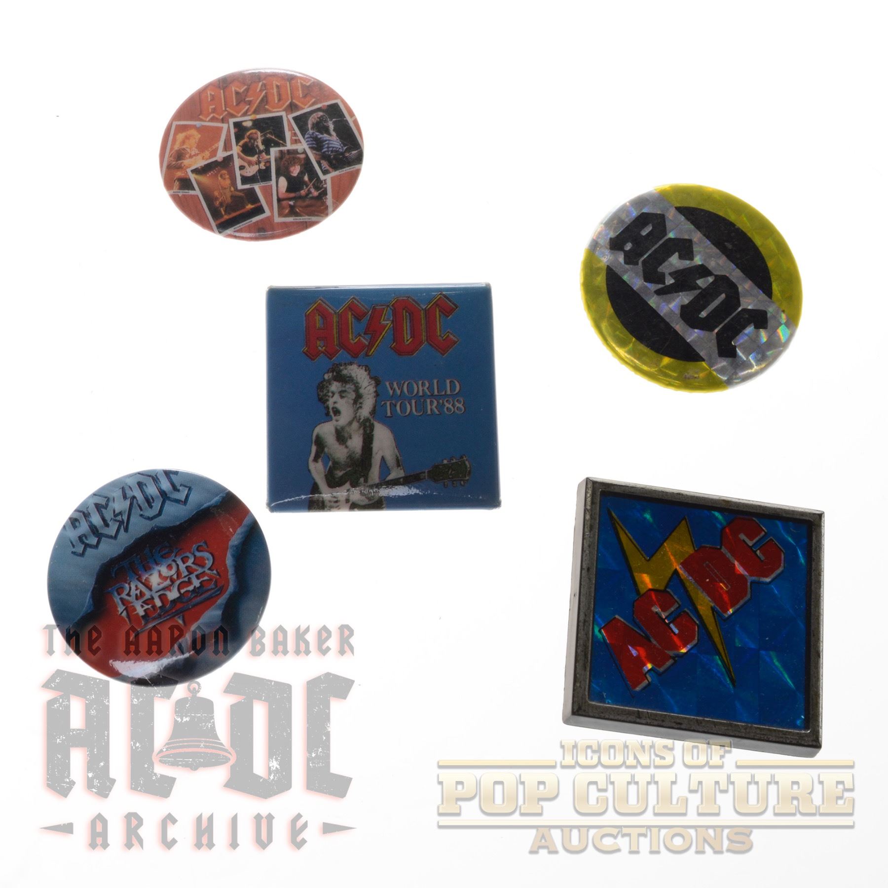 This collection of five AC/DC pins represents a variety of officially licensed and fan-favorite designs produced over the years. These pins were sold as band merchandise at concerts, record stores, and specialty shops, allowing fans to showcase their love for the legendary rock band.