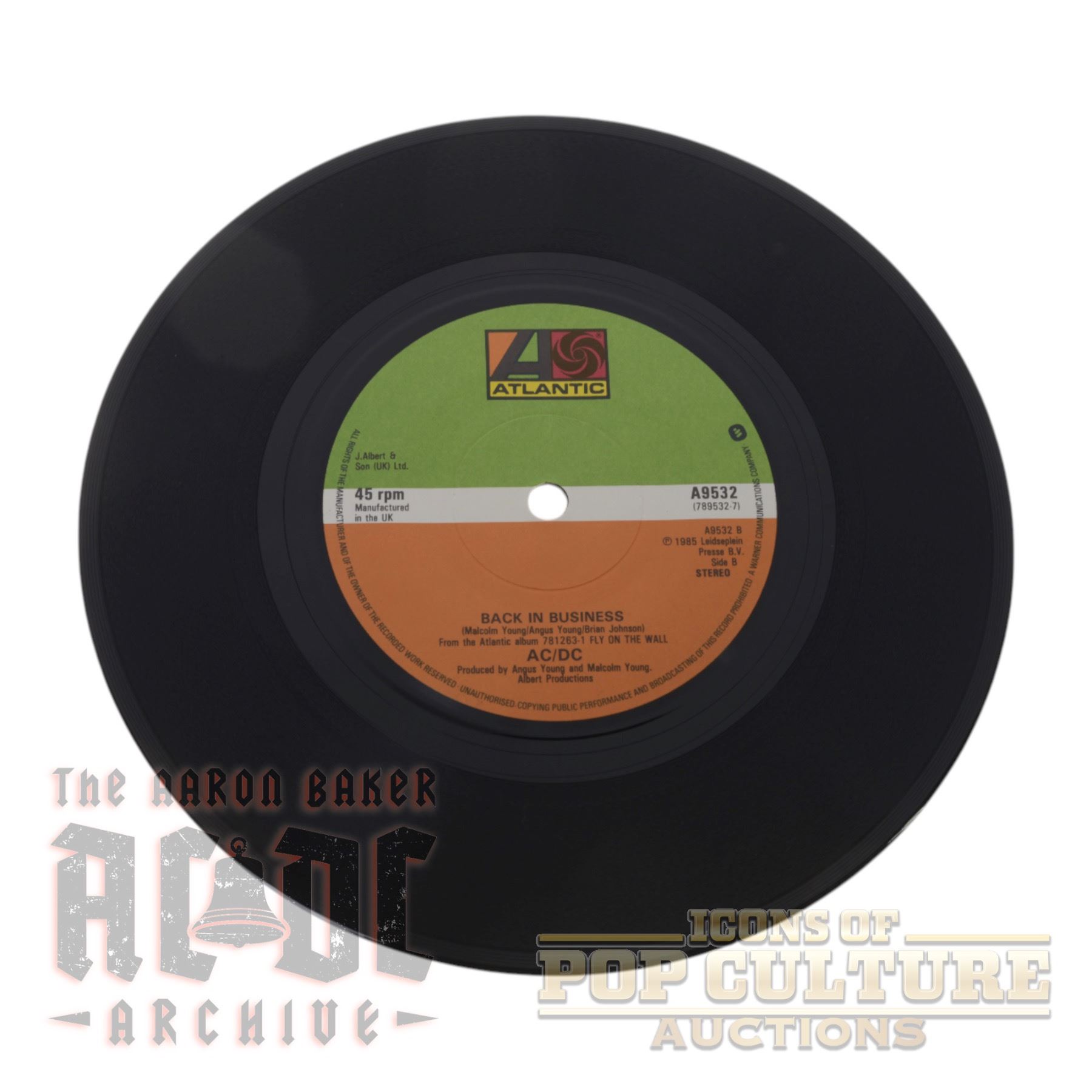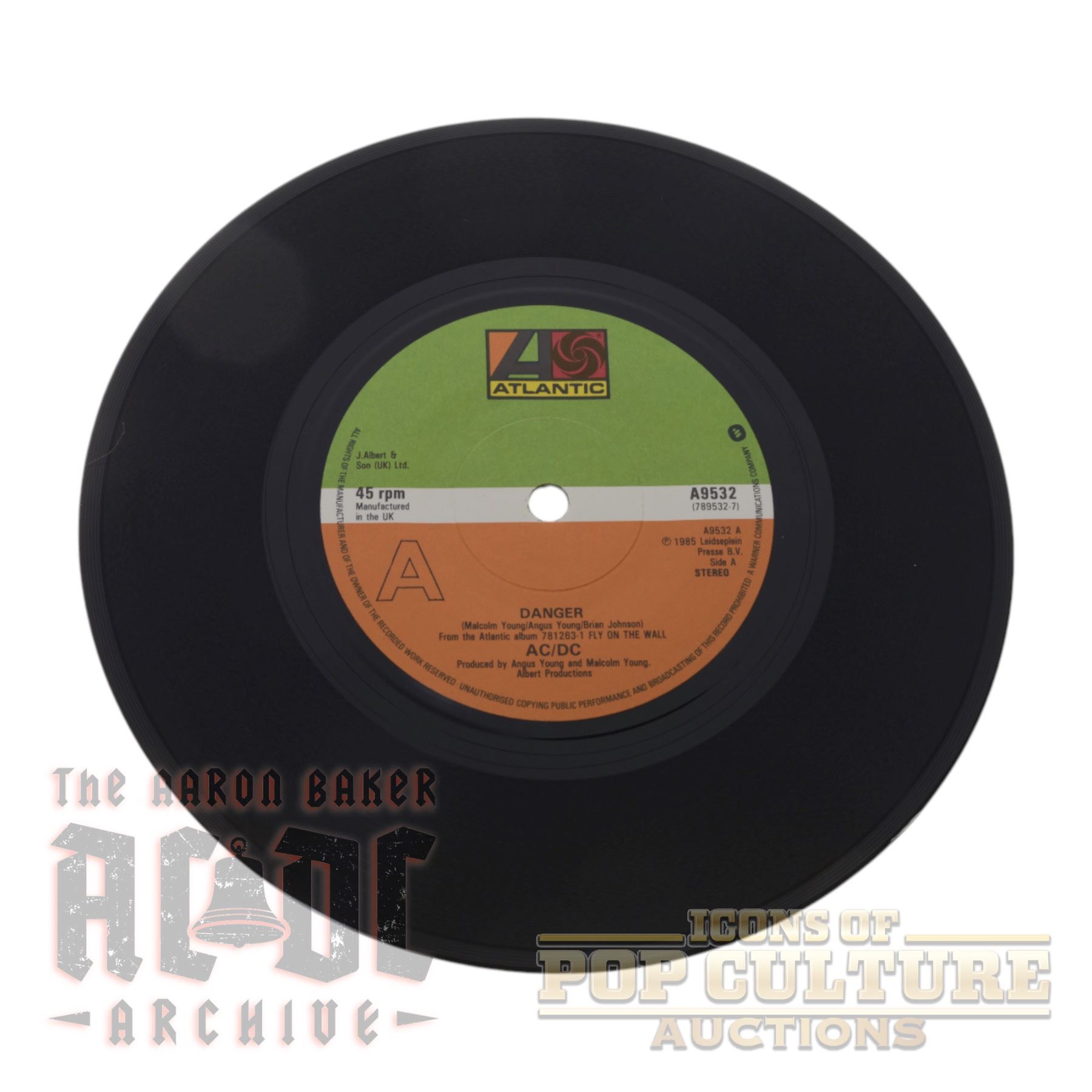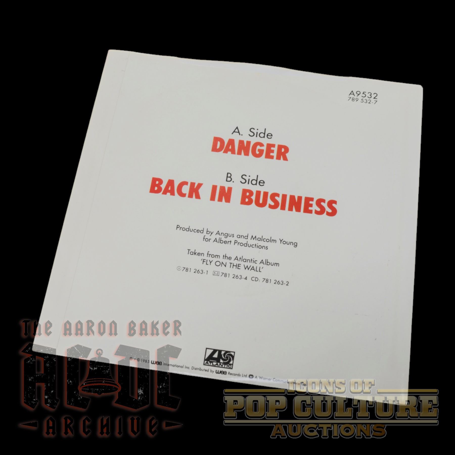 Offered here is an original UK 7-inch single by AC/DC, released in 1985 on Atlantic Records with the catalog number A9532. The A-side features "Danger," while the B-side includes "Back in Business," both tracks taken from the band’s 1985 album Fly on the Wall. Produced by Angus and Malcolm Young for Albert Productions, this release came during the Fly on the Wall era, showcasing AC/DC’s raw, hard-edged sound of the mid-1980s. The sleeve features a striking warning sign-style artwork with a bold exclamation mark and a small illustrated fly in the corner, tying into the album’s visual theme. This single is a classic collectible from AC/DC’s extensive discography and a must-have for fans of their mid-80s output.