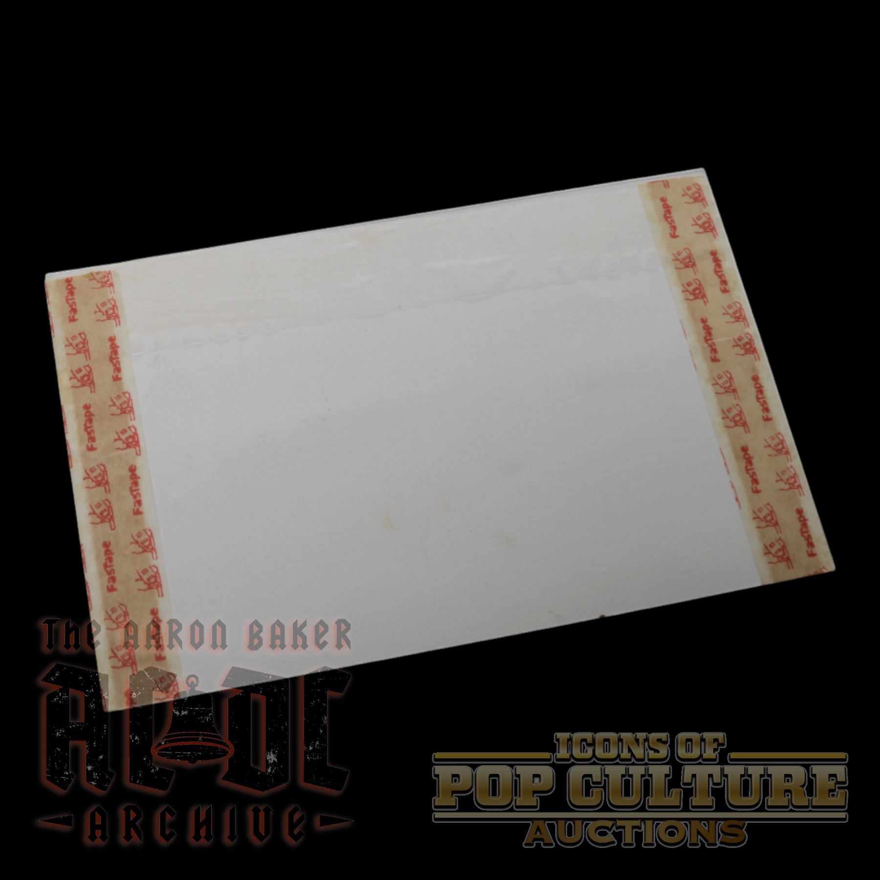 This rare 7" x 4.5" production mechanical proof features a bold rendering of the iconic AC/DC logo with the phrase “For Those About To Rock,” referencing the band’s 1981 anthem and album of the same name. Crafted during the pre-digital era of design, this proof includes the band’s high-voltage typeface set against a clean backing board with original layout markings and protective overlay. The logo design matches the style used in early 1990s promotional materials and product branding, likely created for use on packaging, in-store signage, or promotional merchandise tied to reissues or the release of the AC/DC Live album in 1992, which often referenced their classic hits and slogans.