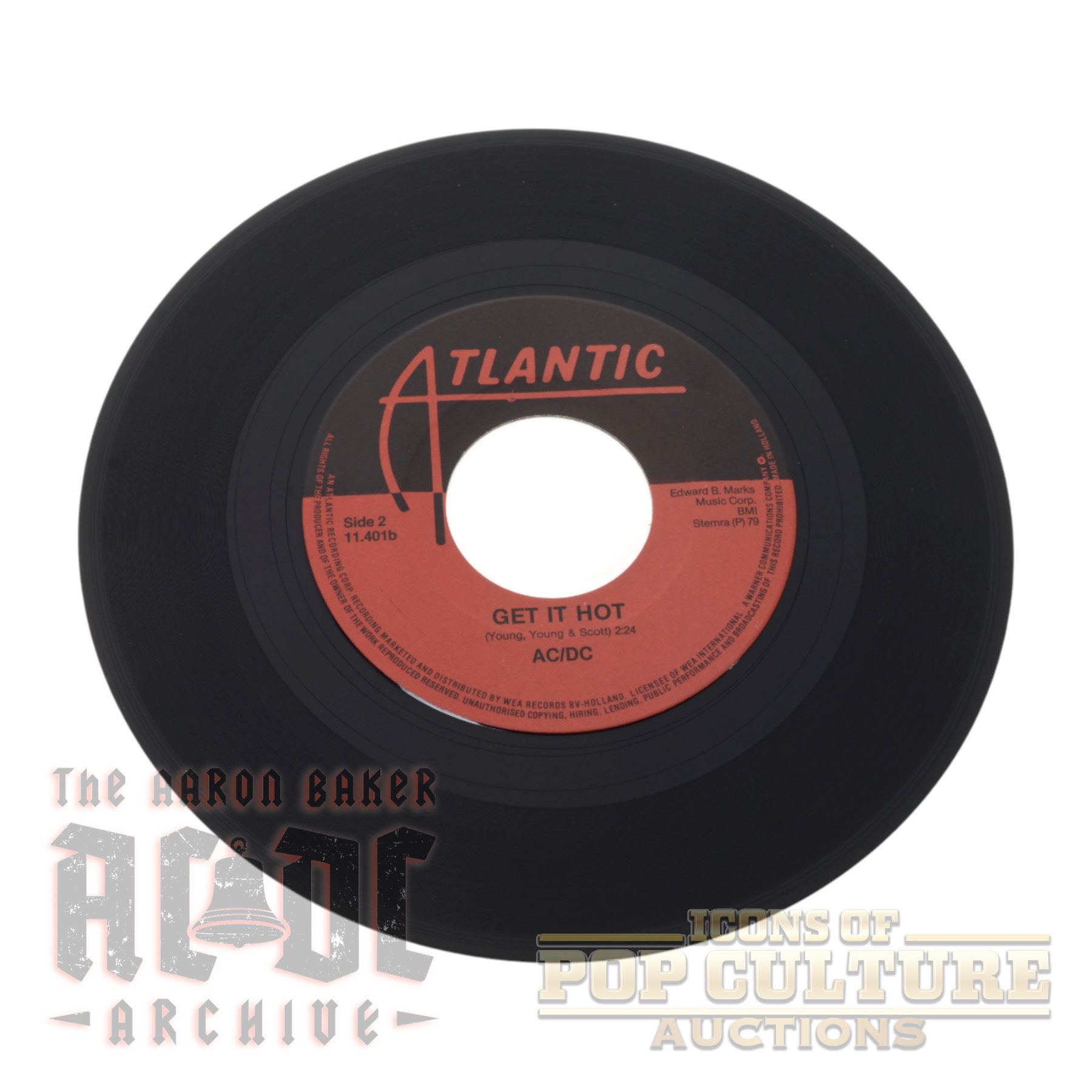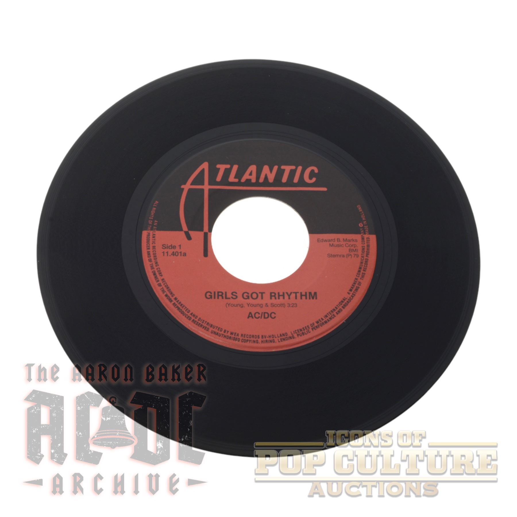 Issued in 1979 by Atlantic Records in Belgium, catalog number ATL 11 401, this 7-inch single pairs the swaggering rock anthem Girls Got Rhythm with the fiery deep cut Get It Hot, both from AC/DC’s landmark album Highway to Hell. Written by Angus Young, Malcolm Young, and Bon Scott, the A-side is a punchy, hook-driven showcase of the band’s hard rock mastery, while the B-side offers a lean, fast-paced rocker beloved by fans for its raw energy.
