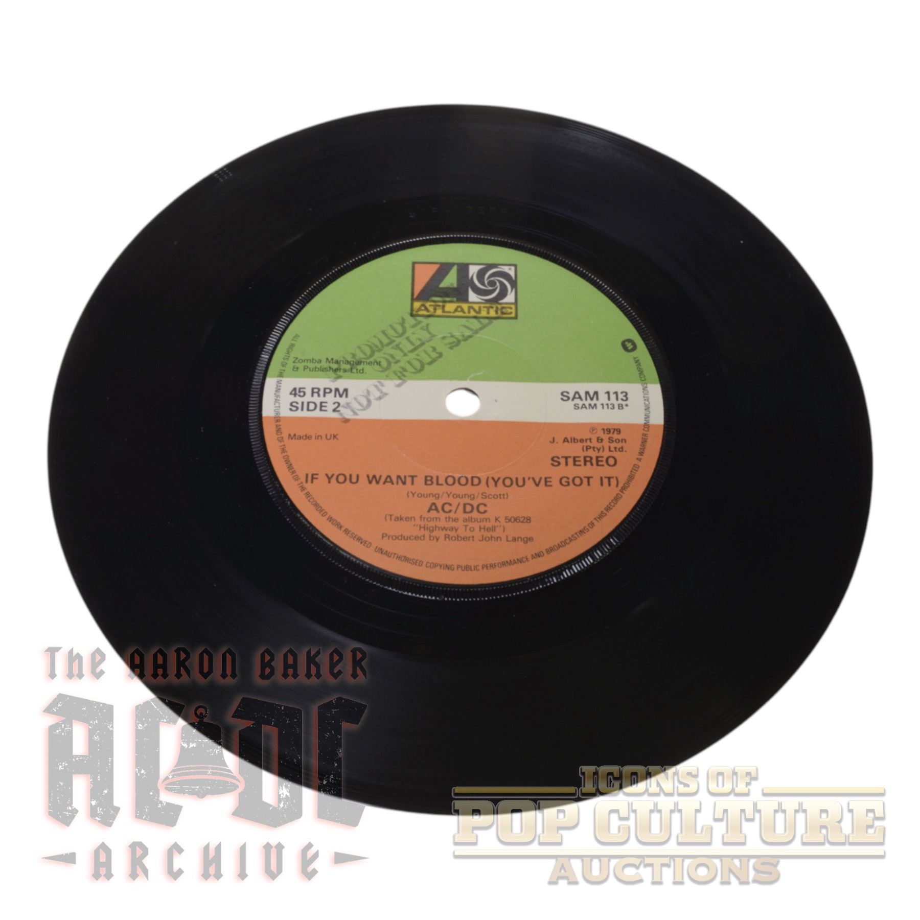 A scorcher of a promo 45: this official UK-only Atlantic SAM 113 promotional single from 1979 showcases AC/DC’s raw Bon Scott era energy with the classic riff‑monster “Girls Got Rhythm” on Side A, backed with “If You Want Blood (You’ve Got It)” on Side B. Housed in its clean Atlantic “Single” sleeve stamped W.E.A. Promotional Use Only, it’s an ultra‑rare release, not available to the public, made strictly for radio and press. The labels display the UK catalog SAM 113 / SAM 113 A / SAM 113 B** text, and the stamp indicates “Radio Only / Not For Sale.”