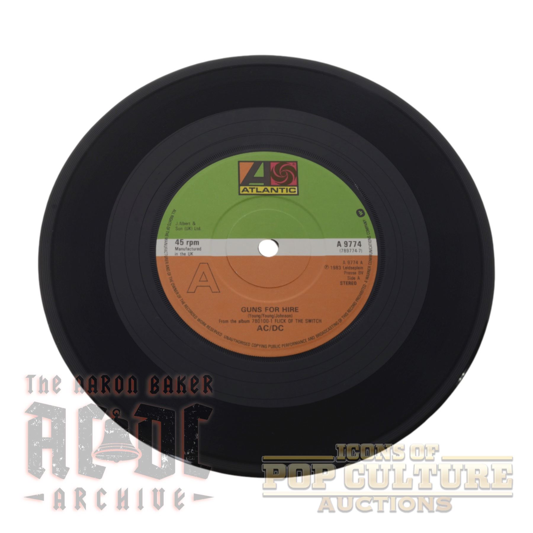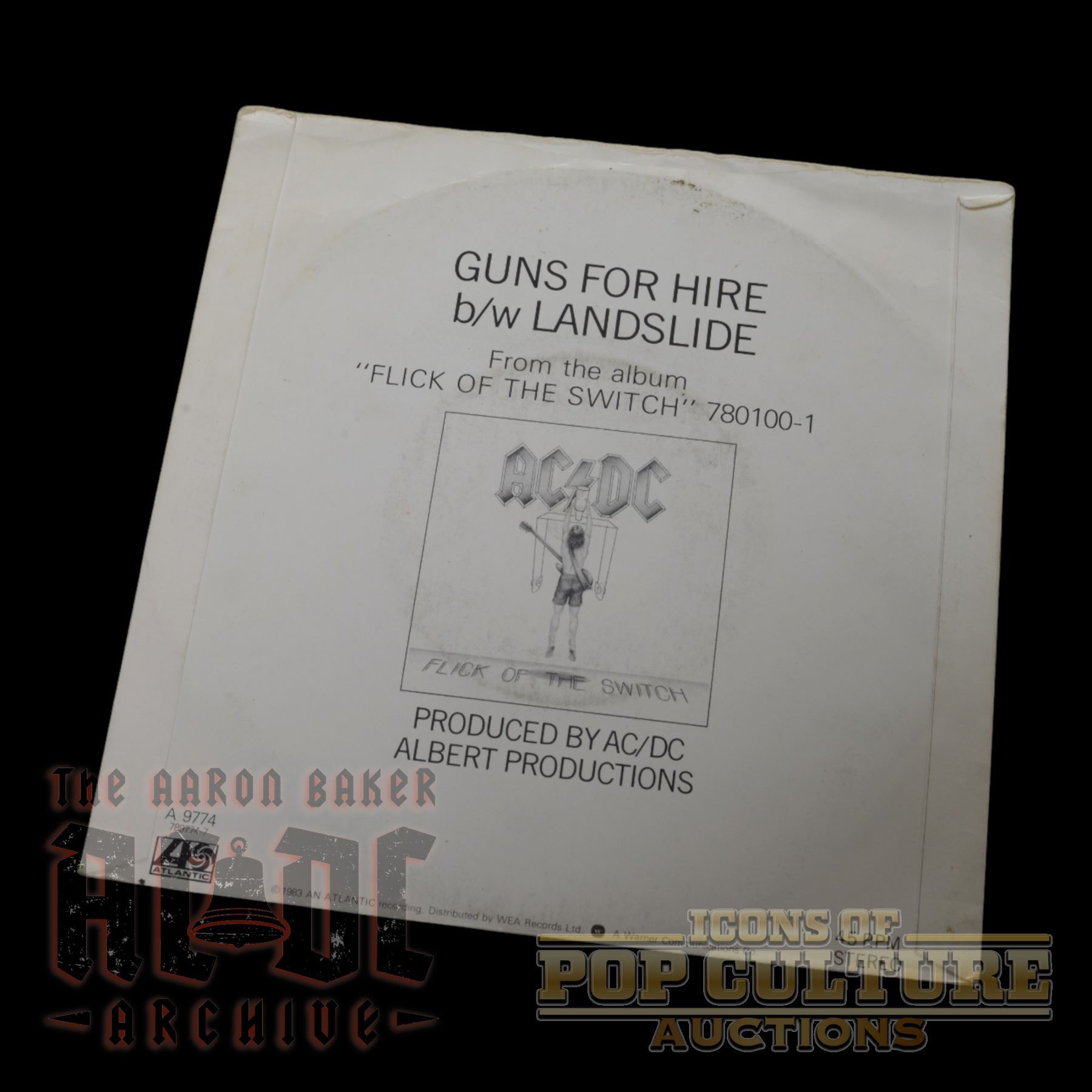 Offered here is the original UK 7-inch single release of AC/DC’s Guns for Hire, backed with Landslide, issued by Atlantic Records in 1983 under catalog number A 9774. Both tracks are taken from the band’s raw, stripped-back 1983 album Flick of the Switch, produced by AC/DC themselves.
