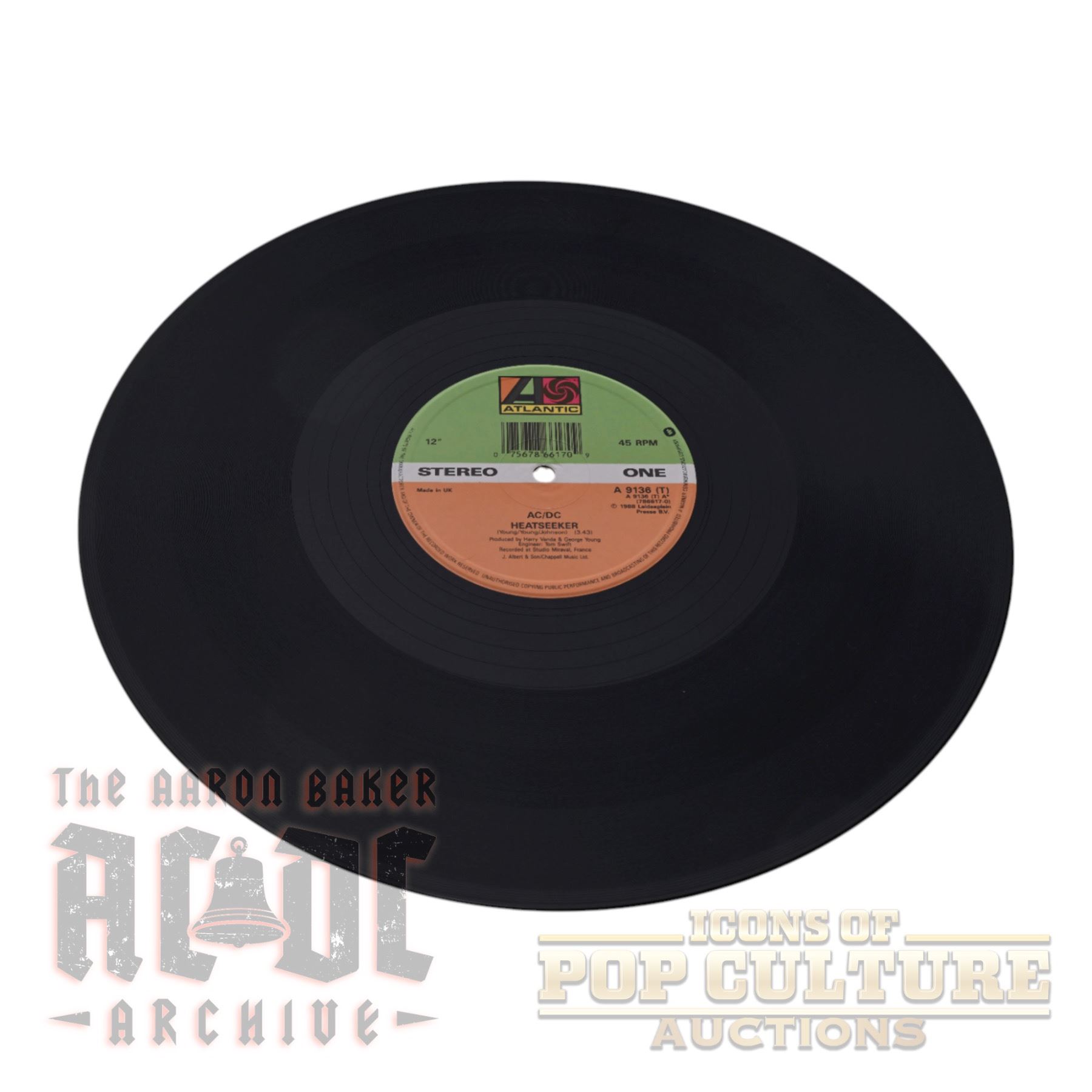 This is the 12-inch maxi-single Heatseeker by AC/DC, released in the UK/Europe in January 1988 on Atlantic Records under catalog number A-9136T. It includes the title track Heatseeker (3:43) on Side A, with Go Zone (4:25) and Snake Eye (3:16) on Side B. The record was produced by Harry Vanda & George Young and comes in a gatefold collector’s package, with 45 RPM pressing. It’s a release tied to the Blow Up Your Video album era, showcasing the band’s hard rock sound in the late ’80s.