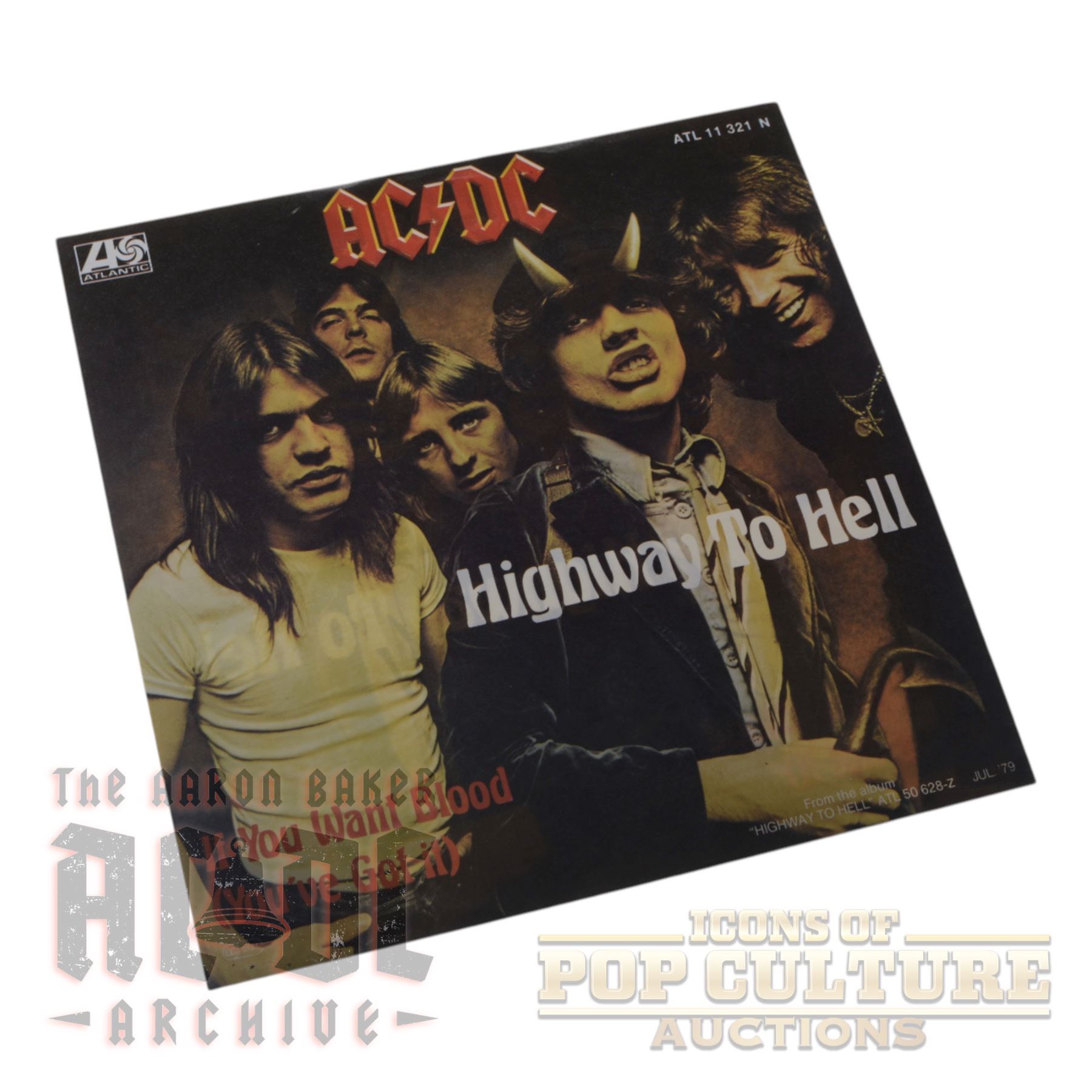 This is an original European 7-inch vinyl single of AC/DC’s “Highway to Hell” backed with “If You Want Blood (You’ve Got It),” released on Atlantic Records under catalog number ATL 11 321. Issued in 1979 in the Netherlands and around 1980 in Germany, this pressing captures AC/DC at the height of the Bon Scott era, just as the band was breaking into international superstardom. The A-side features the iconic title track from the 1979 album, a hard rock anthem driven by Angus Young’s signature riffs and Bon Scott’s gritty, defiant vocals. The B-side delivers the equally powerful “If You Want Blood (You’ve Got It),” a track that showcases the band’s unrelenting energy and blues-infused rock swagger.