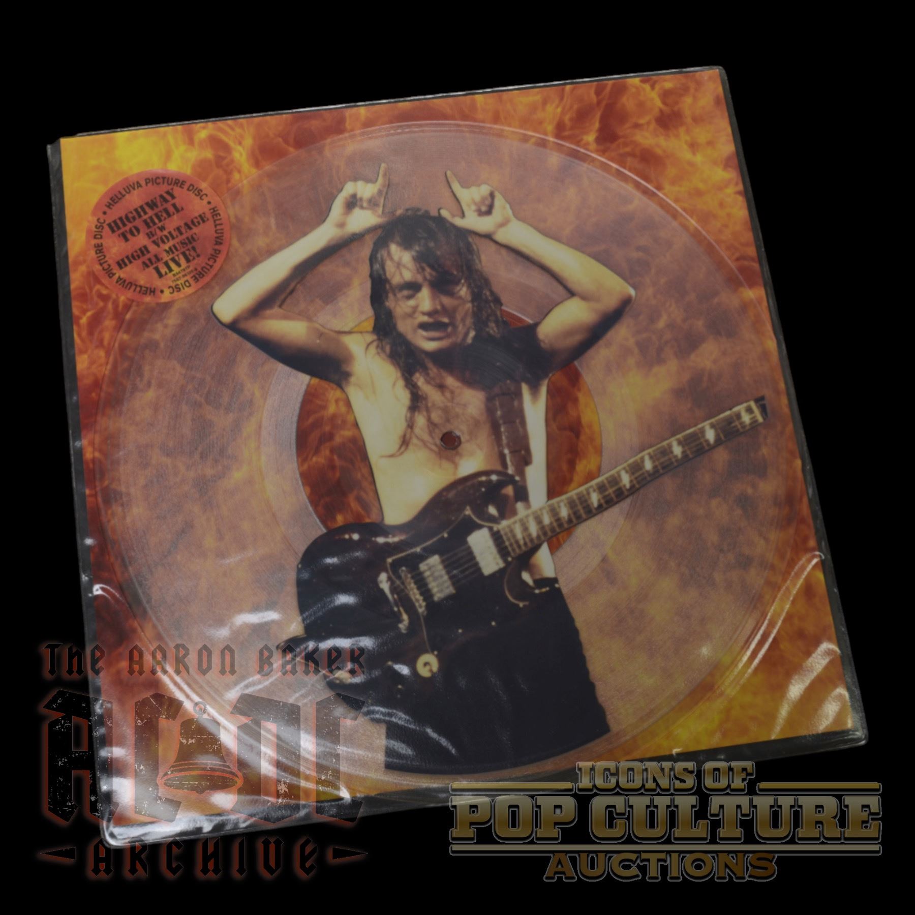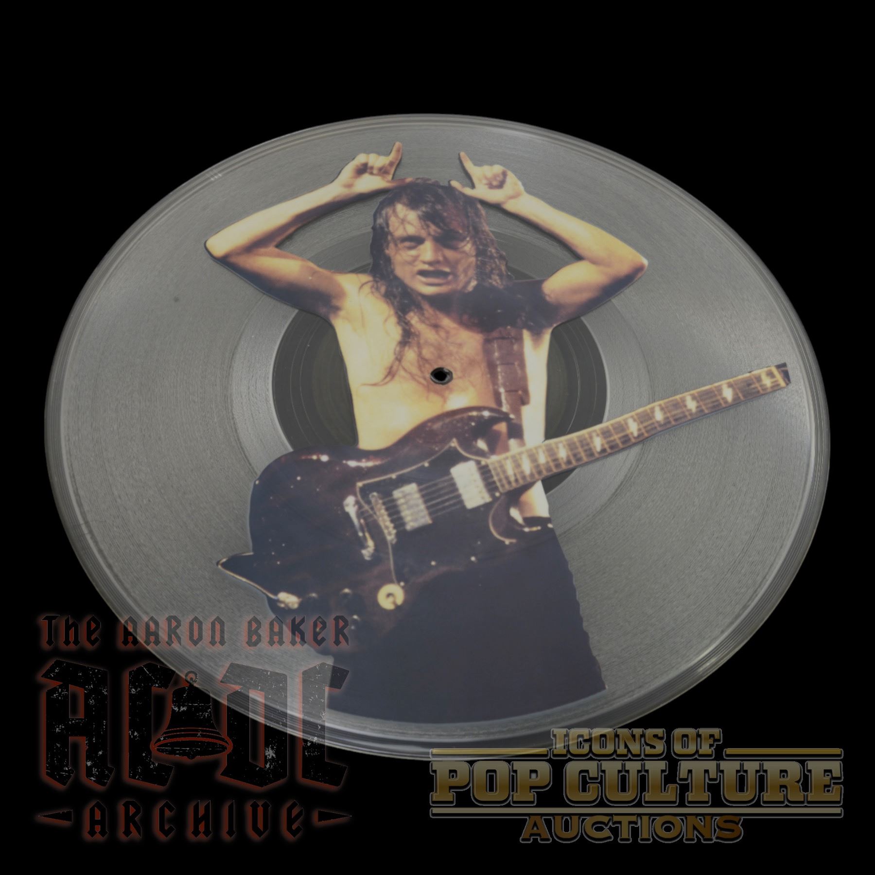 This UK 12-inch picture disc single, catalog number B8479TP, was released in 1992 by Atco/Albert Productions as part of AC/DC’s Live era. Pressed in a vivid full-color design, the front features an iconic image of Angus Young mid-performance, framed by roaring flames, while the reverse showcases a silhouetted Angus against a repeating AC/DC logo pattern.