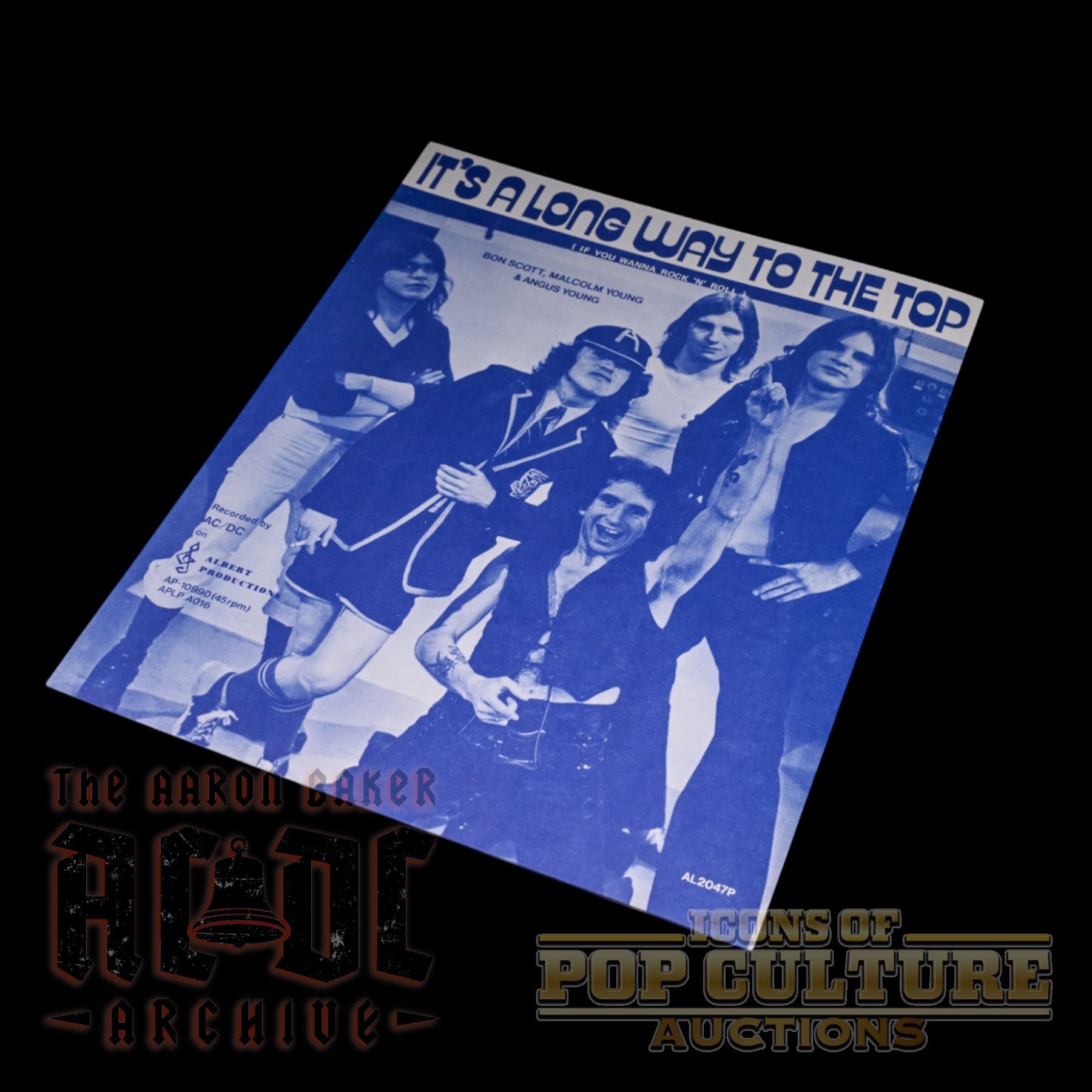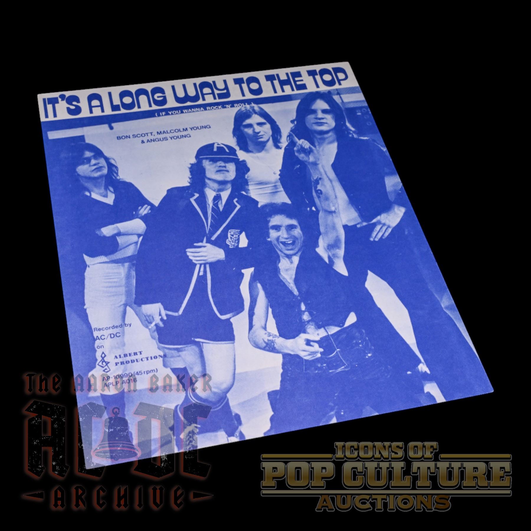 Offered here is original sheet music for the AC/DC classic “It’s a Long Way to the Top (If You Wanna Rock ’N’ Roll),” written by Bon Scott, Malcolm Young, and Angus Young. Published by Albert Productions for the Australian market, this sheet music features a striking blue-toned cover image of the band and includes the full musical notation for the song. A rare piece of memorabilia, it represents one of AC/DC’s most iconic early anthems and is a collectible item from the group’s formative years.