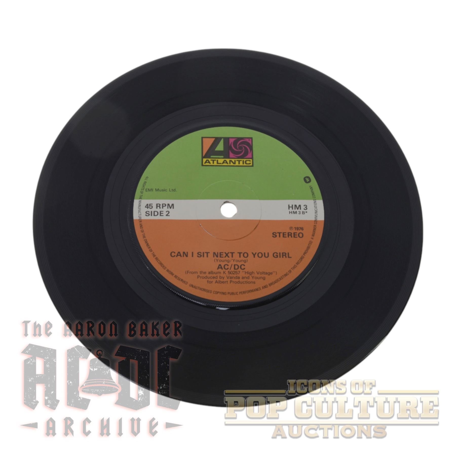 an original UK 7-inch vinyl single by AC/DC, released in 1980 on Atlantic Records as part of the Heavy Metal series, catalog number HM 3. The A-side features the iconic “It’s a Long Way to the Top (If You Wanna Rock ’n’ Roll),” one of the band’s definitive anthems originally from their High Voltage album. The B-side is “Can I Sit Next to You Girl,” a track that holds a special place in AC/DC history as one of their earliest songs. Both tracks are taken from the band’s early recordings, showcasing Bon Scott’s classic era with raw energy and hard rock grit. The single comes housed in its series picture sleeve, which highlights Angus Young in his signature schoolboy outfit, a true period piece for collectors of AC/DC and rock vinyl.