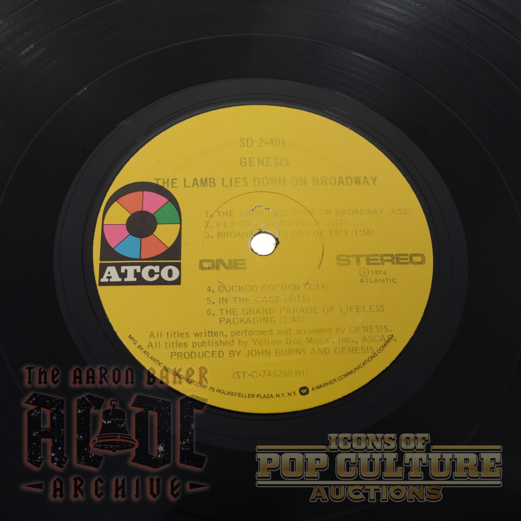 What makes this copy truly unique is a striking factory error: Side A is mis-labeled with the center sticker from The Lamb Lies Down on Broadway by Genesis (catalog number SD 2-401), while Side B correctly features the Let There Be Rock label. Such pressing mistakes are scarce and highly prized by collectors, especially when involving two iconic bands from vastly different genres.