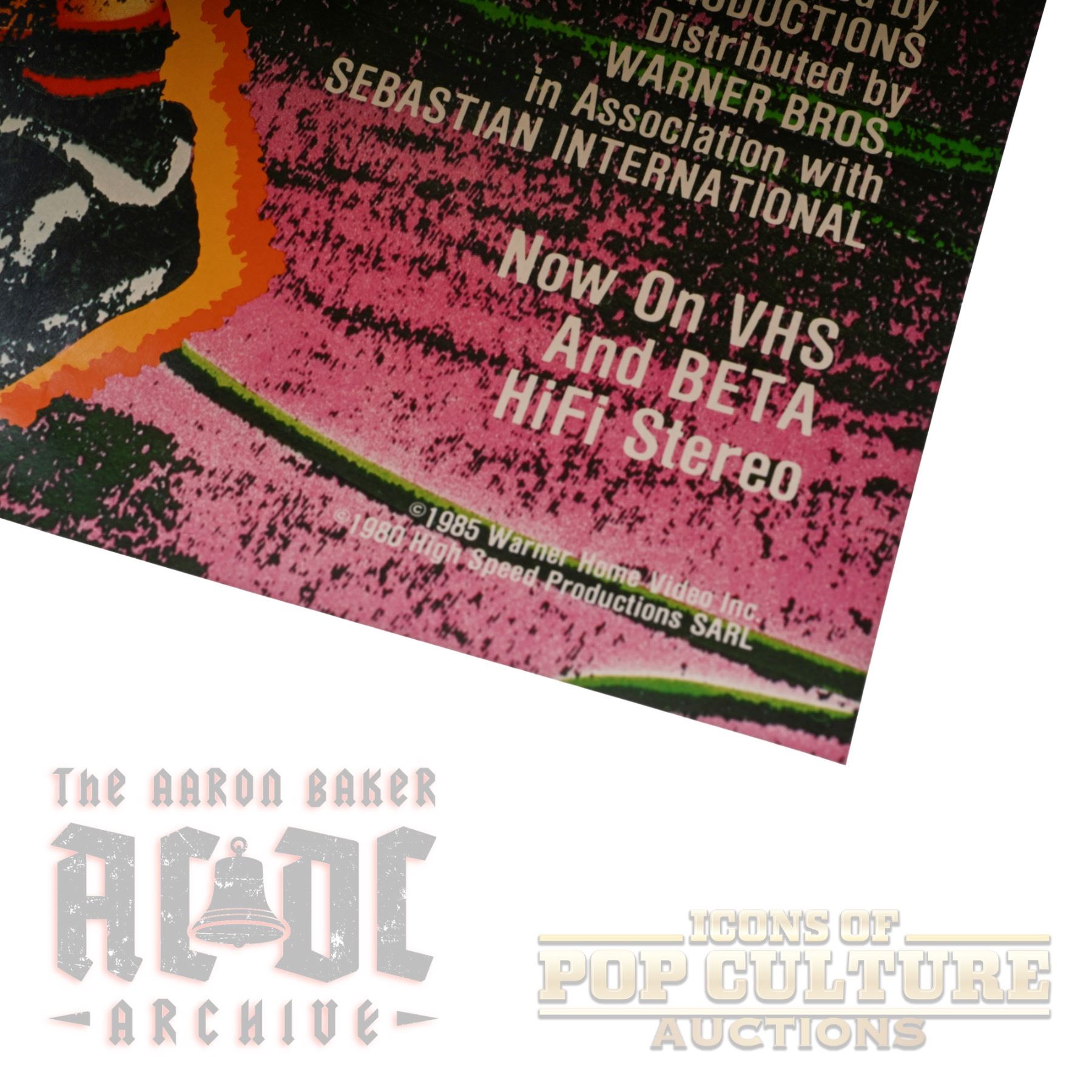 This 28" x 12" promotional poster was issued exclusively to video rental stores to promote the home video release of AC/DC's Let There Be Rock movie. It was never intended for public sale, making it a rare and highly collectible piece of AC/DC memorabilia.