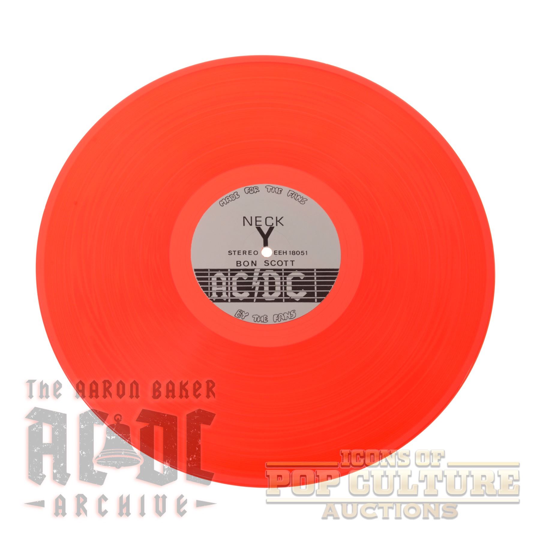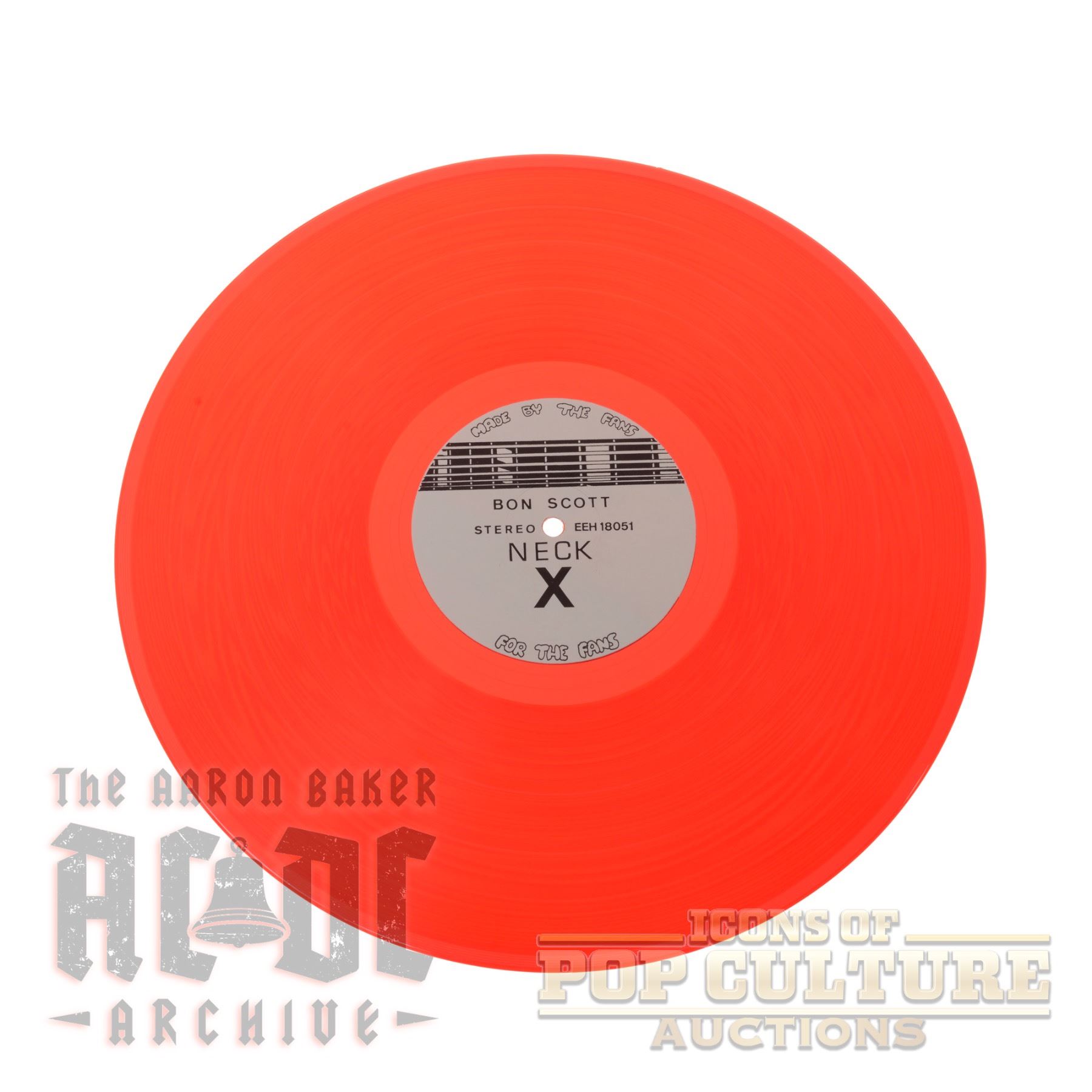 Presenting a rare bootleg vinyl release titled “Live‑78”, a limited‑edition collector’s item assembled in Tasmania and pressed on striking red translucent vinyl (catalog number EEH 18051, titled Neck X — Bon Scott on the label). This unofficial AC/DC recording compiles live performances from the band’s 1978 era, featuring powerhouse tracks including “Live Wire,” “Problem Child,” “Gone Shootin’,” “Bad Boy Boogie,” “Rock ‘n’ Roll Damnation,” “Down Payment Blues,” “Fling Thing,” “Rocker,” and “Dog Eat Dog.” Known among collectors as an uncommon bootleg with just a few hundred copies issued, it stands out both for its bold visual presentation and its comprehensive snapshot of Bon Scott-era live energy